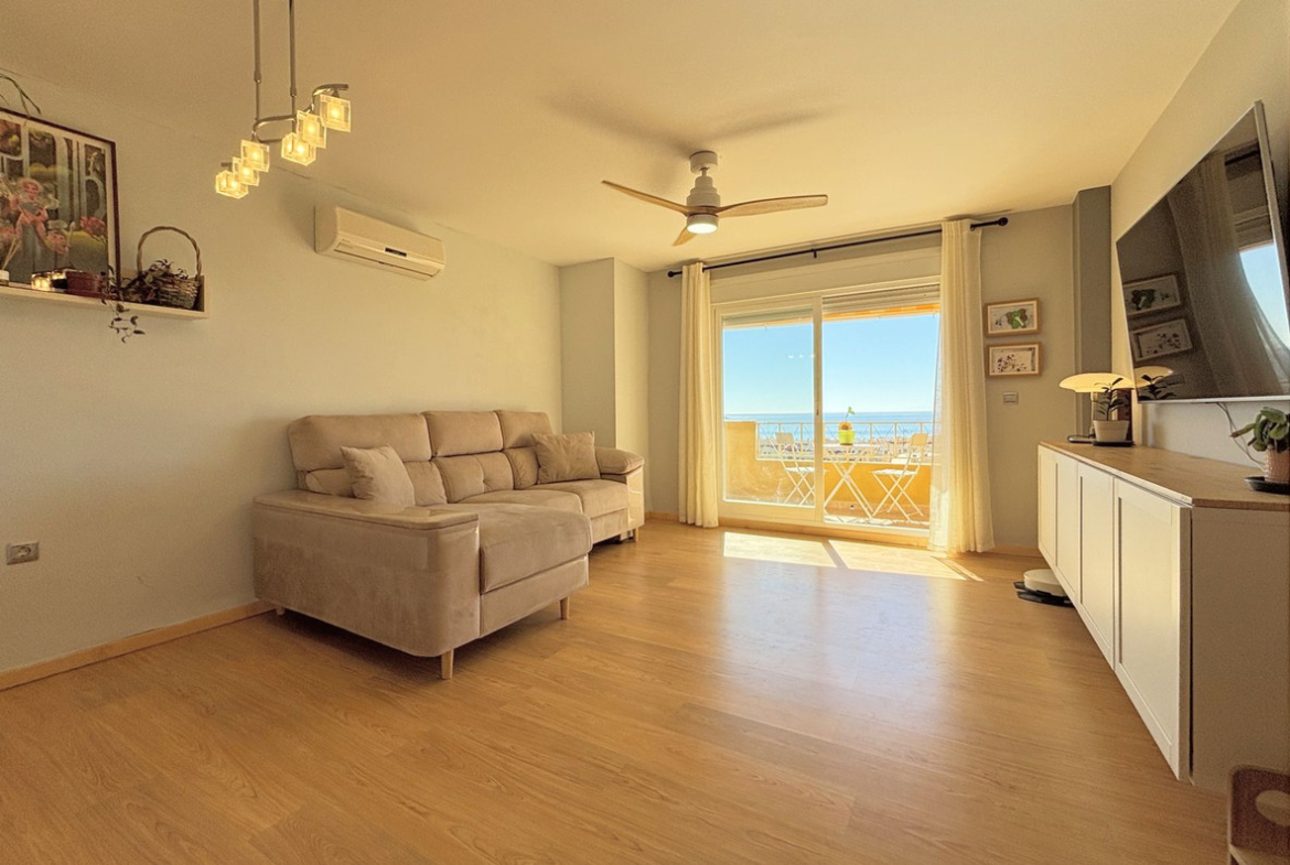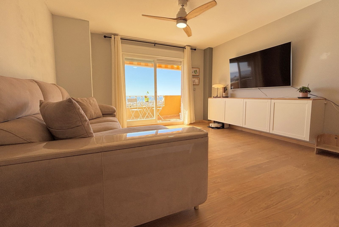 The home features 4 bedrooms, 2 full bathrooms, a separate kitchen, and a spacious living room that opens directly onto a terrace with breathtaking panoramic sea views. Perfect as a family residence or as an investment with excellent rental potential, it also includes a private garage space and a storage room in the price. A property that combines location, views, and quality of life in the heart of the Costa del Sol.