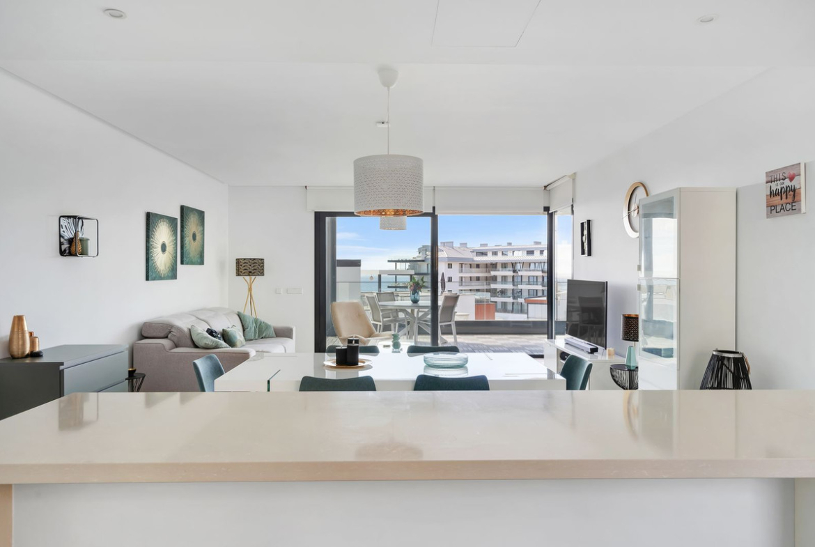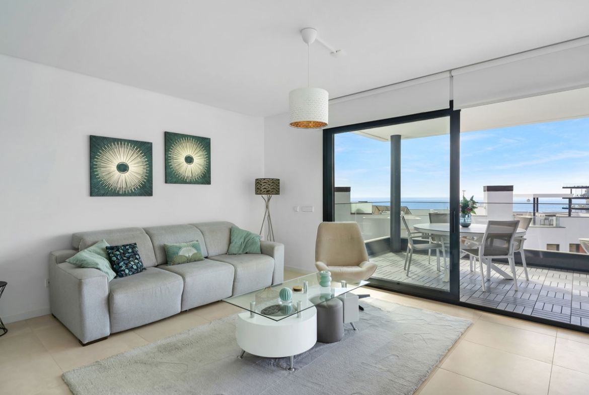 This spacious 4-bedroom apartment, just a 5-minute walk from the beach, offers the ultimate in coastal living with breathtaking sea views. In addition, it is a 2-minute walk from Carvajal train station, it is a 15-minute drive to Malaga and 30 minutes to Marbella. With a generous living space and a modern design, this apartment exudes luxury and comfort.