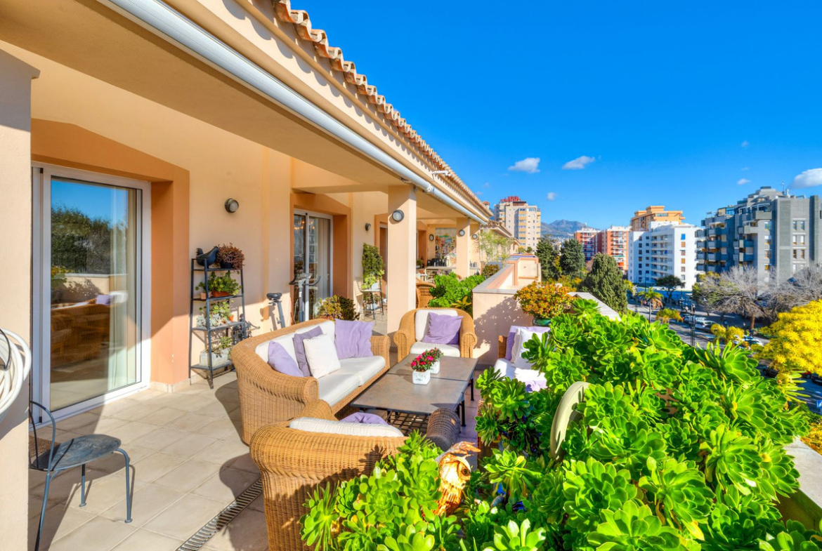 This is a rare opportunity to acquire an exclusive and spacious penthouse with extensive outdoor areas – right in the centre of Fuengirola, yet with complete privacy.
