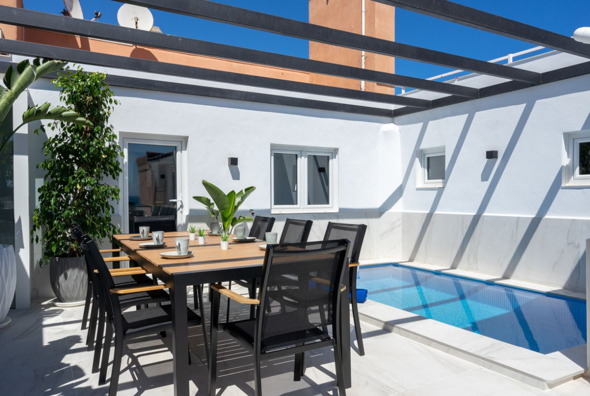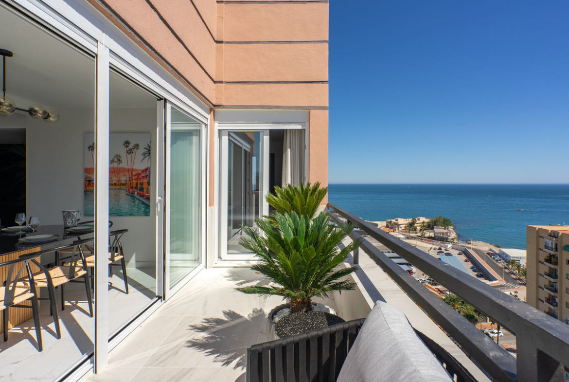 Welcome to one of the most exclusive penthouses on the Costa del Sol — newly renovated, privately elevated above the Fuengirola promenade, and complete with its own rooftop pool and panoramic views.