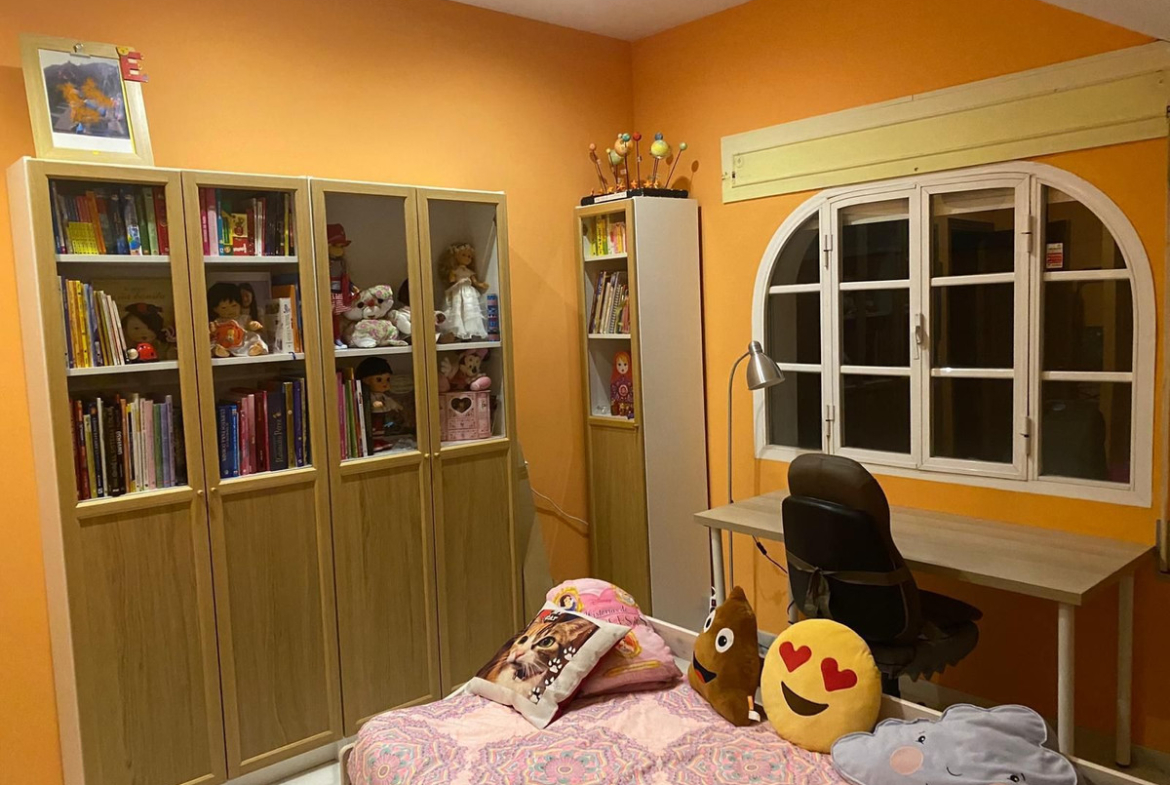 Distributed over two floors, the ground floor houses the living room, kitchen, patio, laundry room, and a toilet, and the upper floor has 4 attic bedrooms and 2 bathrooms.