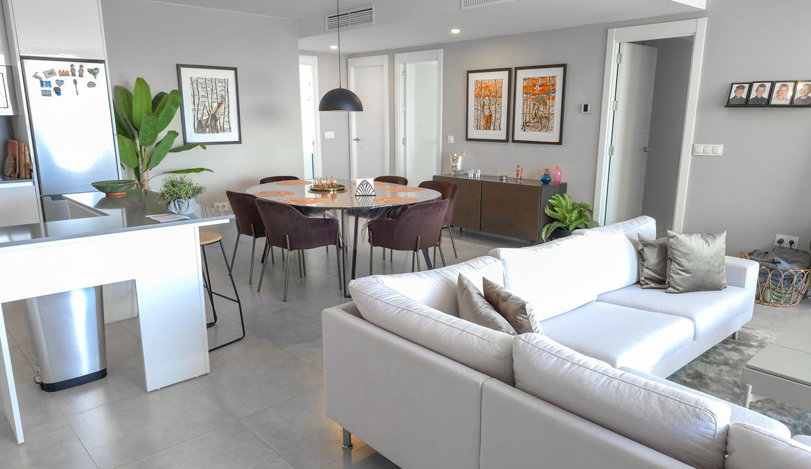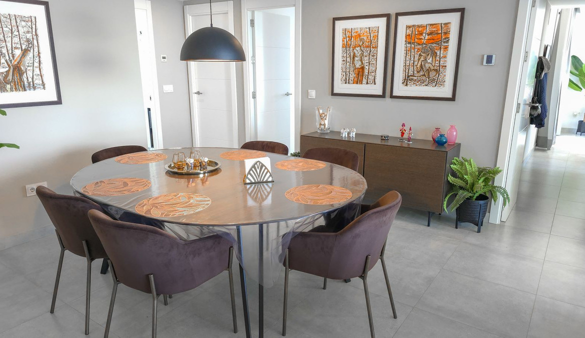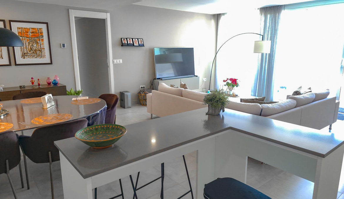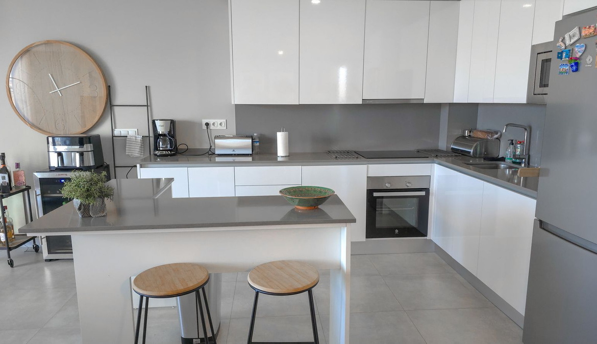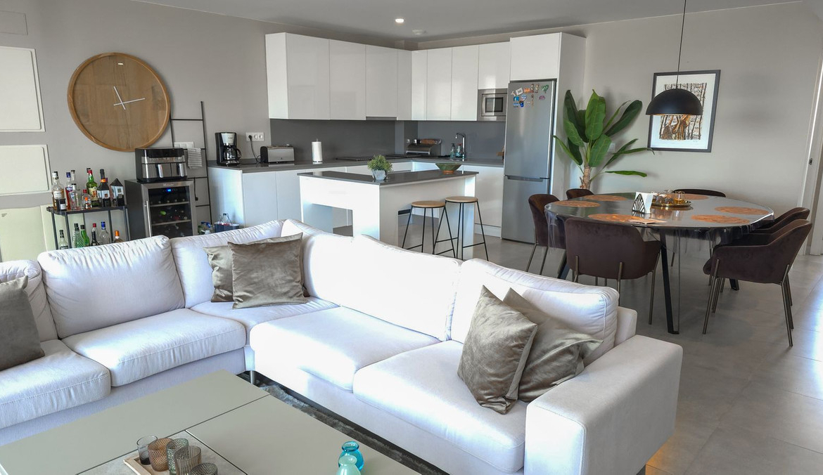 Located in an elevated position above La Cala de Mijas, this penthouse offers sweeping views over the town, surrounding landscapes, and the Mediterranean. The interior layout is designed with open-plan living, generous windows that flood the rooms with natural light, and seamless access to the large terraces. The spacious kitchen and dining area connect effortlessly with the lounge, creating an ideal space for both everyday life and entertaining.