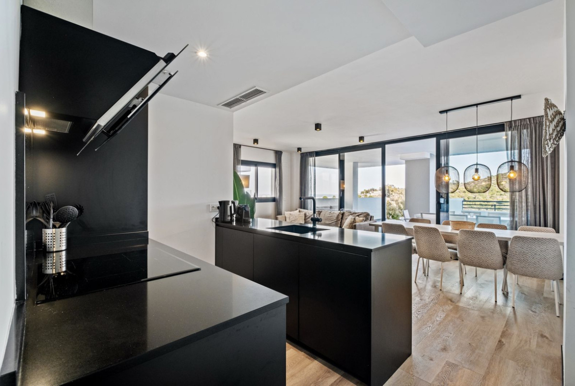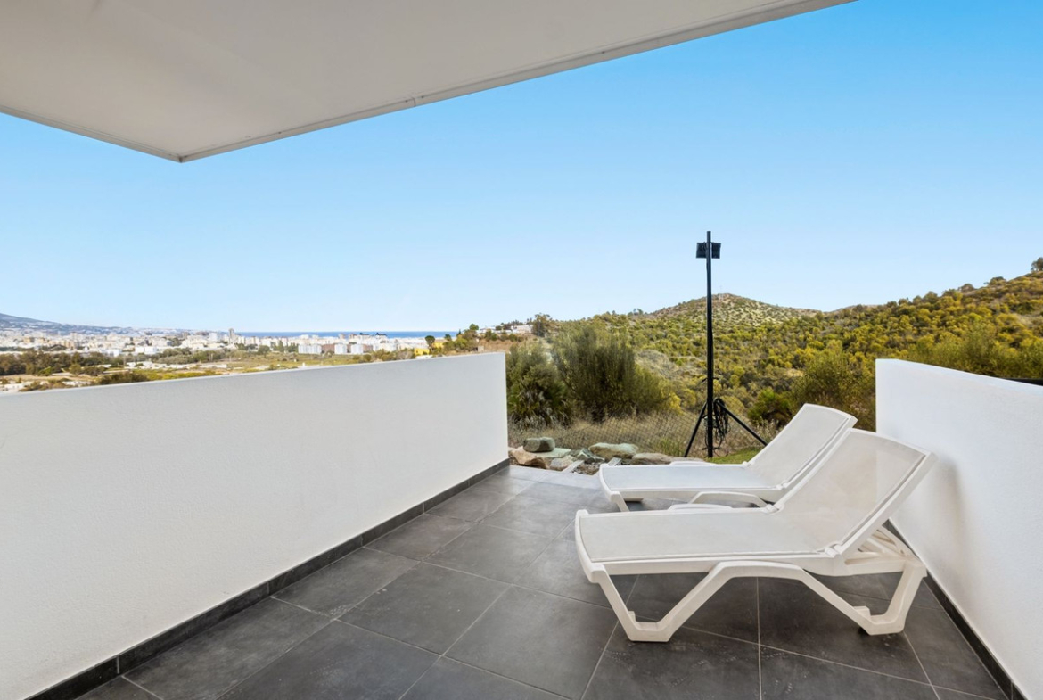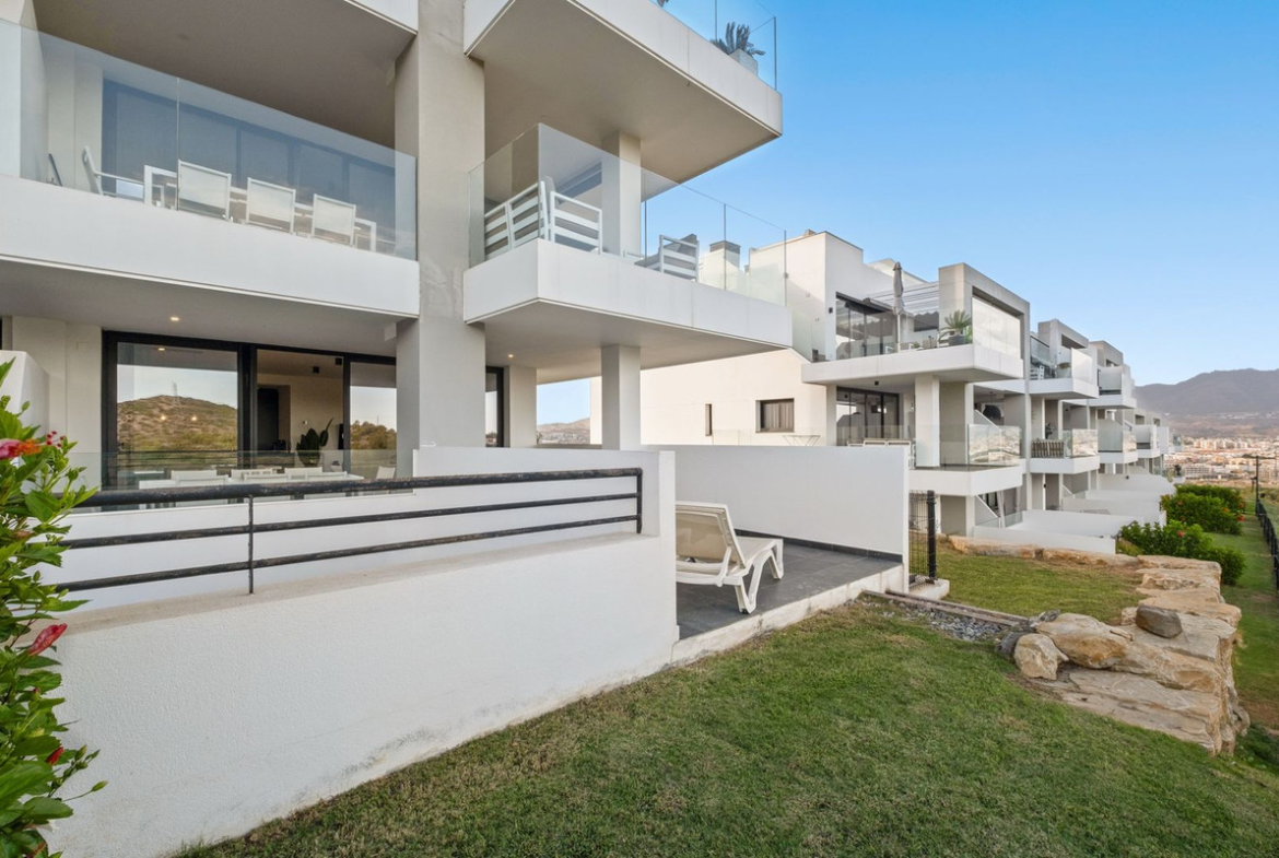 Featuring 4 spacious bedrooms and 2 full bathrooms, the open-plan kitchen flows seamlessly into the living area, creating a bright and contemporary space. Unlike other apartments in the complex, this home boasts a lawn garden, a rear terrace, a side terrace, and a front terrace—ensuring constant sunshine, maximum privacy, and spectacular views of the ocean, the nearby nature reserve, and the Mijas hills.