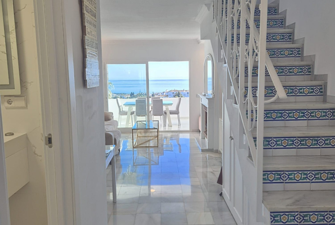 The duplex penthouse enjoys a great location between Fuengirola and Marbella, offering easy access to both towns. It features beautiful views of the sea and the mountains, creating a stunning backdrop for everyday living. Just a one-minute walk from two popular restaurants, Miel y Nata and The Family, as well as the vibrant Millennium Bar & Nightclub. It’s also only a few minutes away from well-known beach destinations such as Max Beach (2.5 miles), Cabopino Beach (1.5 miles), and Marbella center (9 minutes by car).