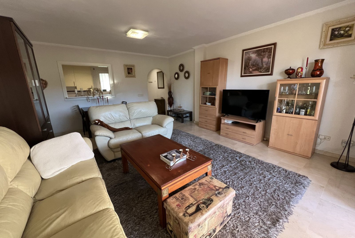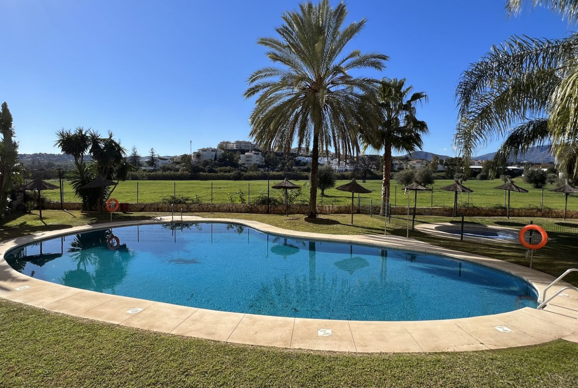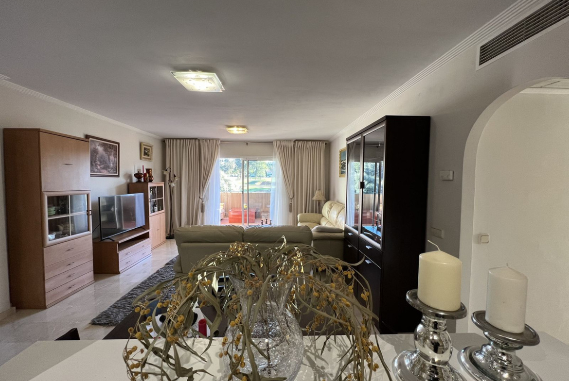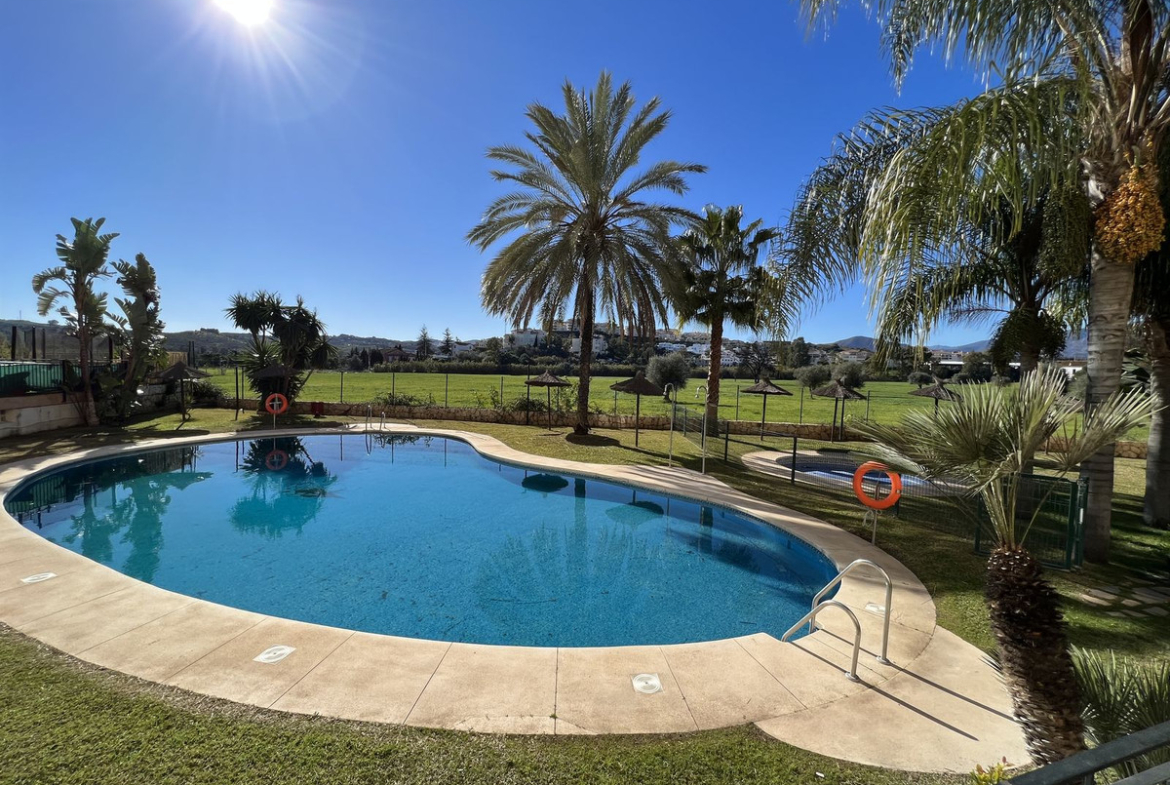 This well positioned 4 bedroom 3 bathroom first floor apartment is spacious, bright and situated in an ideal location. Close to schools, beaches and convenient shops and restaurants. Hacienda del Golf is a community driven urbanisation. With families and long term residence making it a complex that is alive all year round. Known for its excellent facilities with a well cared for community. Secure and well presented, this apartment also has the convenience for a private underground parking and a corner storage unit that gives extra space. The first floor apartment, reachable also by lift is well presented, with a fully fitted semi open plan kitchen onto the lounge and dining room. The terraces are very impressive and wrap around the apartment, ensuring you can walk out onto the terrace from the bedrooms and of course the lounge. All bedrooms are generous in size, with fitted wardrobes and the master suite with a bath and a shower. In good condition and well presented . Front line views onto Mijas Golf and the Sierra de Mijas mountain range as a back drop. The beach is reachable under 10 minutes, Malaga airport is a quick 25 minute drive. The apartment is a short distance from 2 championship golf courses in Mijas Golf, Los Lagos and Los Olivos and only a 10 minute drive from Fuengirola or La Cala de Mijas and their beautiful beaches and public transport on your door step ! Well worth a visit – As always viewings at your convenience.