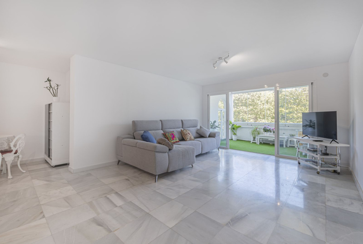 Spacious flat to refurbish in Nueva Andalucia, close to Centro Comercial Plaza and walking distance to Puerto Banus. Discover a unique option! A spacious flat, designed on one floor, which is characterised by its functional and comfortable layout. Upon entering the property, you will be greeted by a spacious entrance hall leading to an independent kitchen fully equipped with appliances and a laundry room. The living-dining room is bright and offers direct access to an enclosed terrace with open views. The flat has four generously sized bedrooms, all of them equipped with fitted wardrobes offering ample storage space. Furthermore, there are two complete bathrooms, some of them en suite. This property has many possibilities for refurbishment.