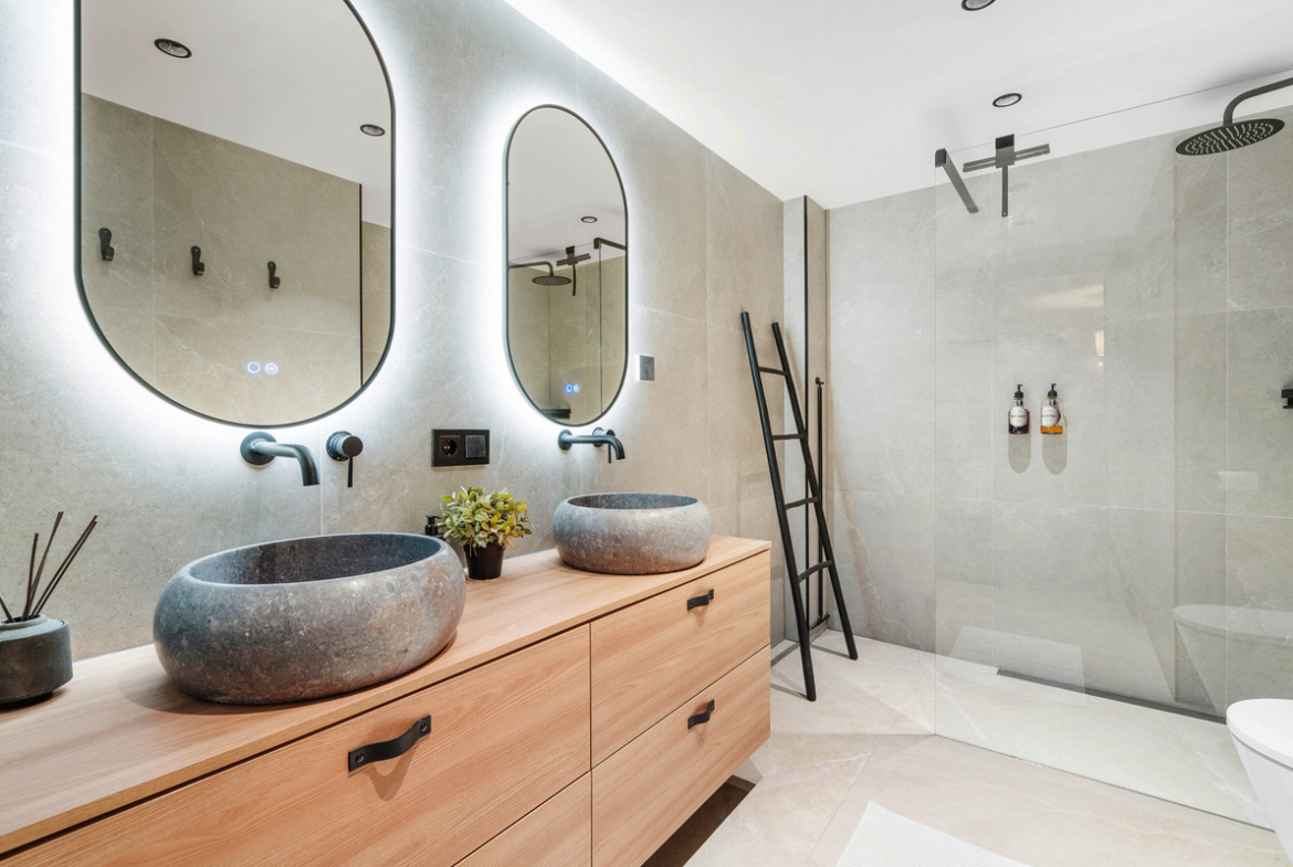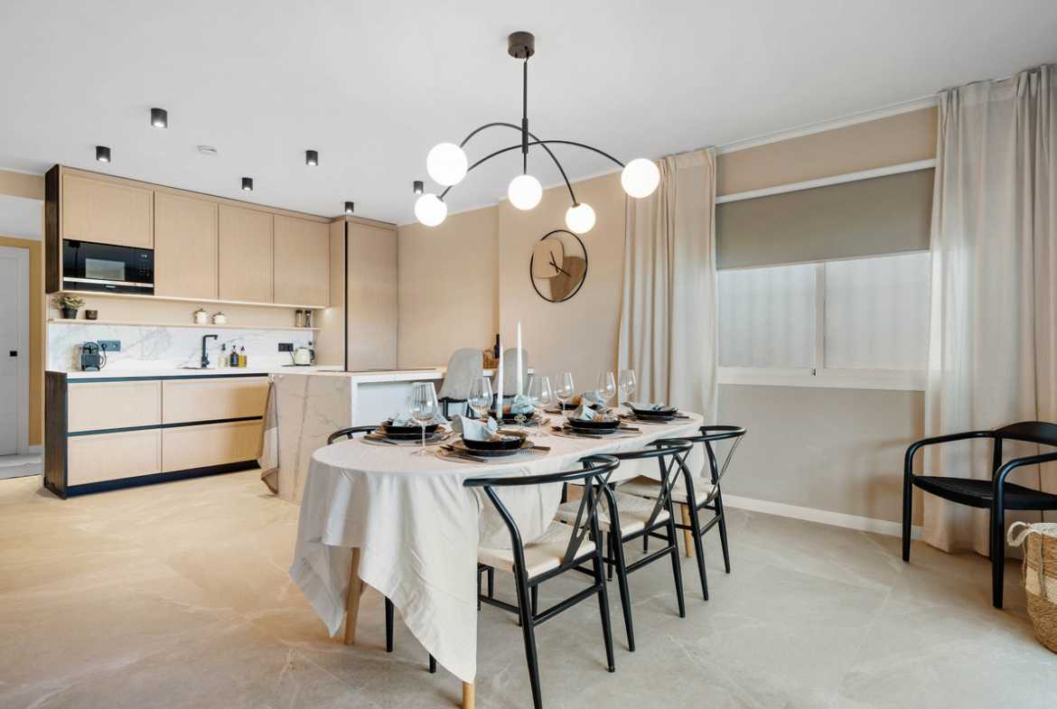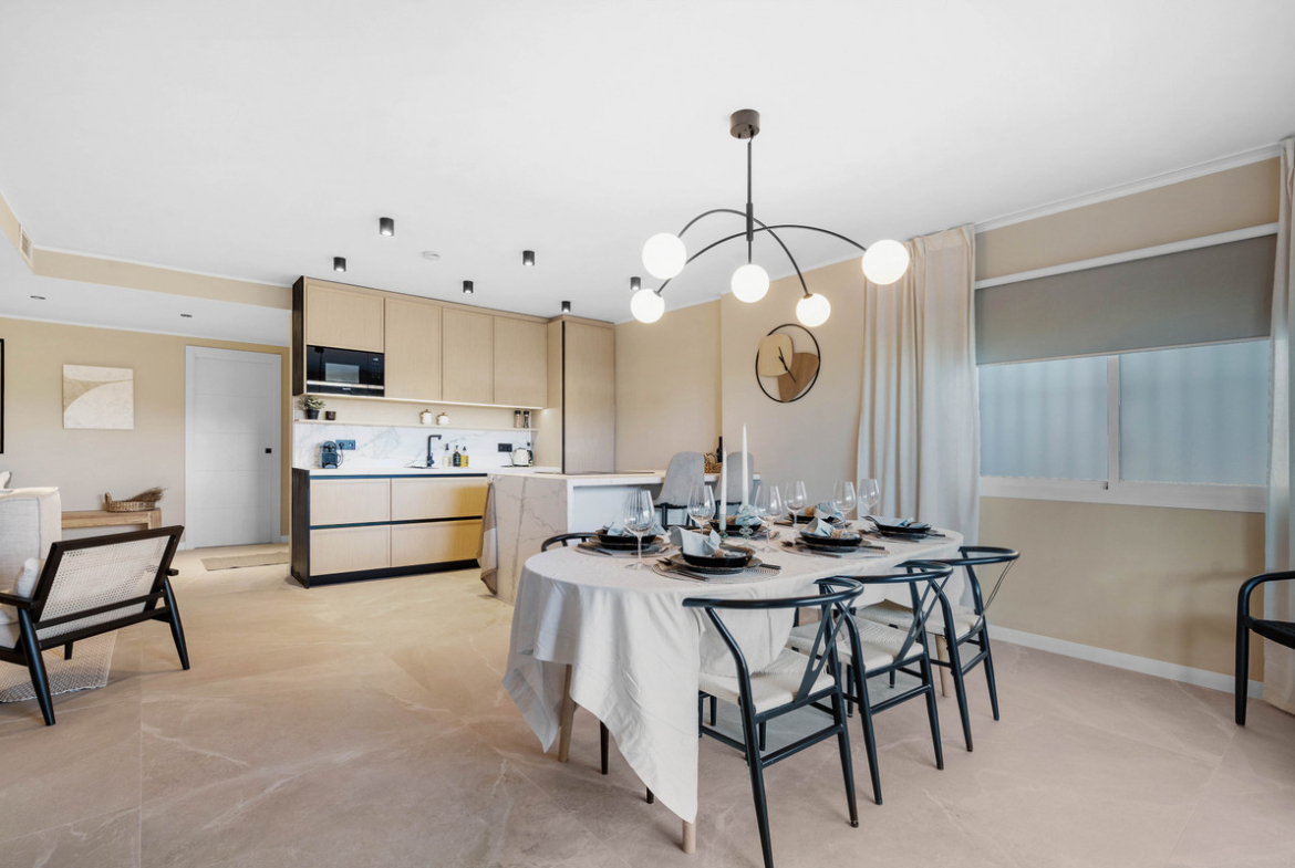 The open-plan living area is thoughtfully crafted for comfort and style, flowing seamlessly onto a spacious southwest-facing terrace — ideal for entertaining, dining al fresco, or simply relaxing in the sun. The natural light and calming design details create a welcoming and refined ambiance throughout.