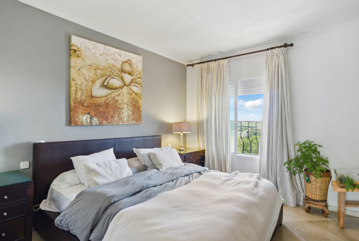 Spacious four-bedroom, duplex penthouse in the Los Pinos de Aloha complex, Nueva Andalucía, Marbella. This gated community offer security cameras, evening guard, access to a communal swimming pool and gardens and offers views of the surrounding landscape, as well as some sea views. Ideally located near golf courses, schools, and local amenities, it is perfect for families and golf lovers. The entrance can be accessed directly via the elevator and opens up to the living and dining area with two private terraces, one featuring a plunge pool; master suite with walk in wardrobe; guest bedroom; guest toilet and fully equipped kitchen. Upstairs, there are two guest suites, both with a private terrace. Other features include hot and cold air conditioning, alarm system, marble floors and gated parking. A fantastic home for year round living or rental investment.