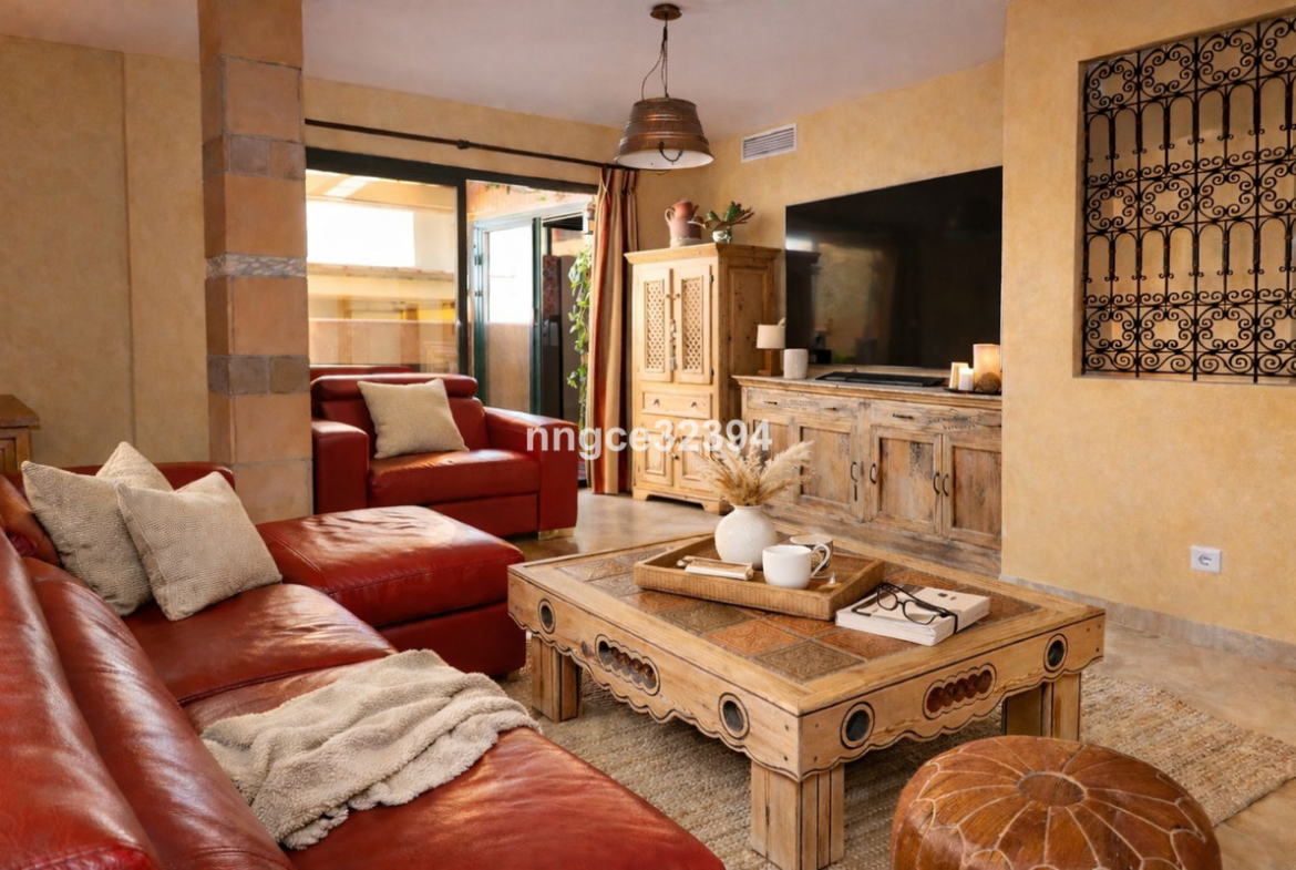 This charming 225 m² duplex ático is located in a secure residential building within a peaceful, pueblo-style community in San Pedro de Alcántara, offering generous living space, authentic rustic character, and beautiful open views of La Concha from both levels.