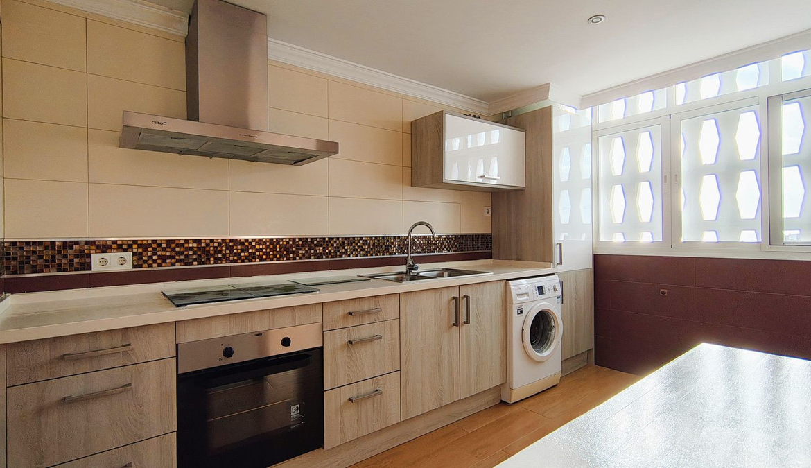 The property stands out for its natural light and sense of space. The living-dining area connects seamlessly with the kitchen through a practical peninsula layout, creating an open-plan and functional living space, ideal for both everyday living and entertaining.