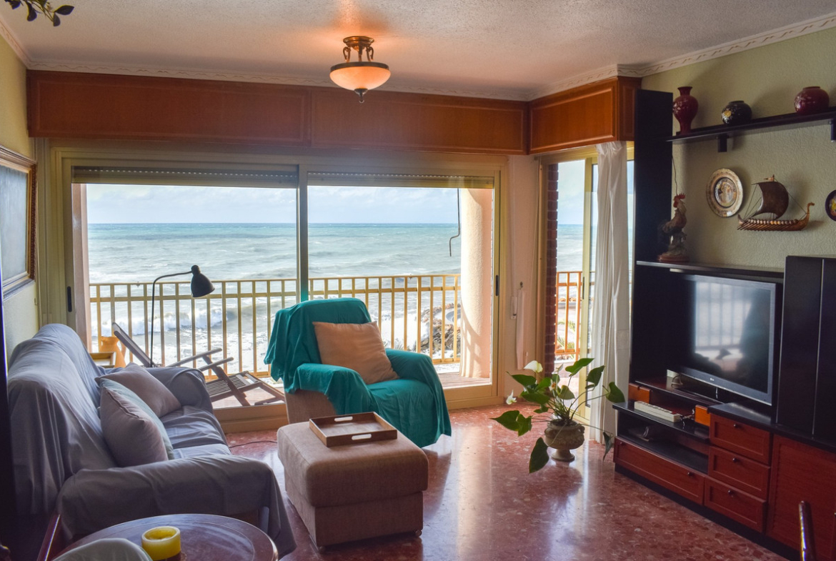 Discover this 120 m² apartment located on the beachfront of Paseo Juan Aparicio in Torrevieja , a prime location with stunning sea and beach views . This elegant property comes fully furnished and features three spacious bedrooms and two full bathrooms , ideal for year-round living or enjoying luxury holidays on the Mediterranean coast. The open-plan kitchen flows seamlessly into a bright living room , creating a welcoming and functional atmosphere. Two of the bedrooms offer spectacular, unobstructed sea views , providing a unique experience every morning. The building has an elevator , ensuring convenience and accessibility. Furthermore, the property is situated in a vibrant area with direct access to restaurants, cafes, and leisure facilities , all within easy reach without needing a car. A unique opportunity to acquire a singular property on one of the most sought-after seafront promenades on the Costa Blanca .