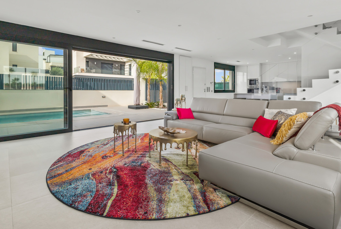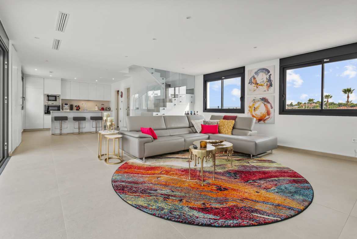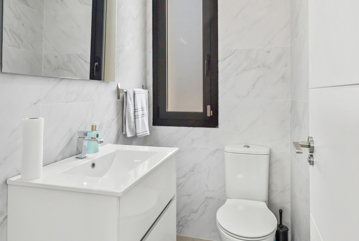 We are delighted to present to you this Fabulous Detached Villa in Algorfa! Set in an amazing area, walking distance to a commercial area, this property offers everything you need for an exceptional lifestyle in Spain. The property is accessed through an automated gate for parking the car on the plot. Right in front of the house there is a large swimming pool to enjoy the warm weather throughout the year. As you enter the main door, the large living space is flooded with lot of natural light. On the left side you have the open kitchen area fully equipped and high-quality finishes, perfect to entertain the guests. In the same area you have the utility room with the washing machine, boiler, and the dryer. On the same level, there is a toilet as well. As you go on the 1st floor you access the main bedroom and the guest bedroom, both with good size and en suite bathrooms. The same floor has a large balcony with views over the pool area.
