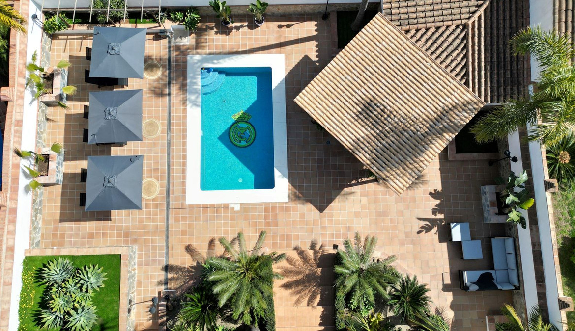 Set on a walled plot of 750 m², the house is surrounded by a mature, low-maintenance garden with subtropical planting, lemon and palm trees. Outdoor living is a key feature, with a private swimming pool, sun deck, breakfast terrace, balcony and a fully equipped outdoor kitchen with BBQ and toilet.