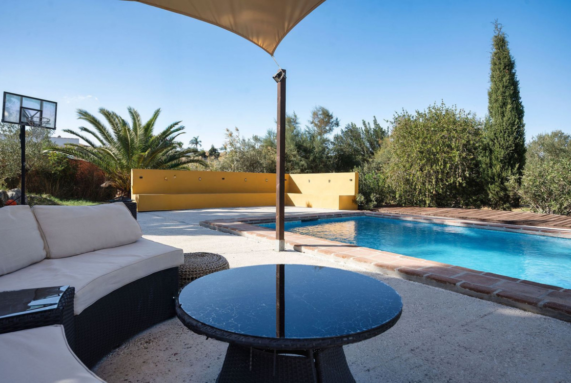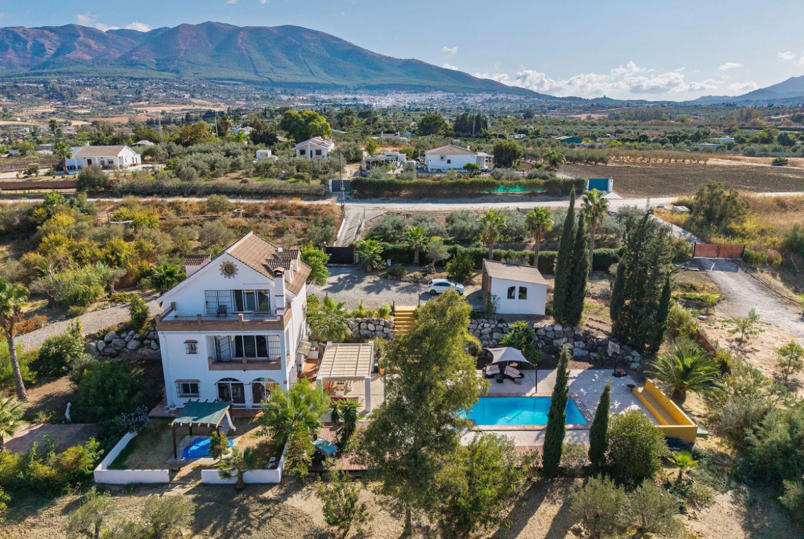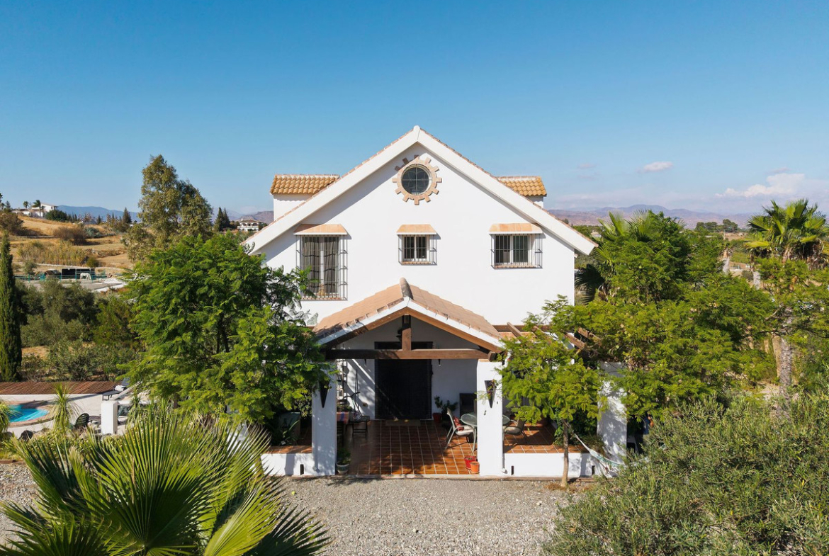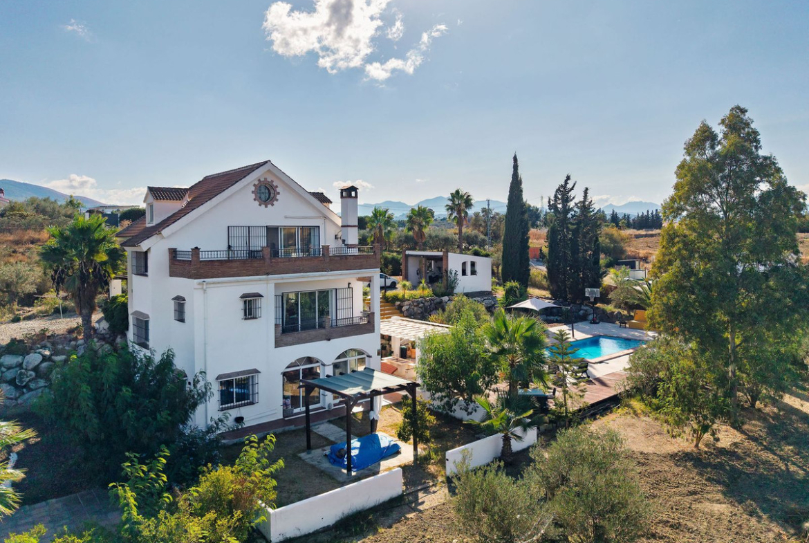 Beautiful and spacious villa located in a peaceful area of the Alhaurín countryside, offering total privacy and excellent outdoor space. Set on a large, mostly flat plot of over 5,000 m² with mature fruit trees, landscaped gardens, and a private swimming pool.