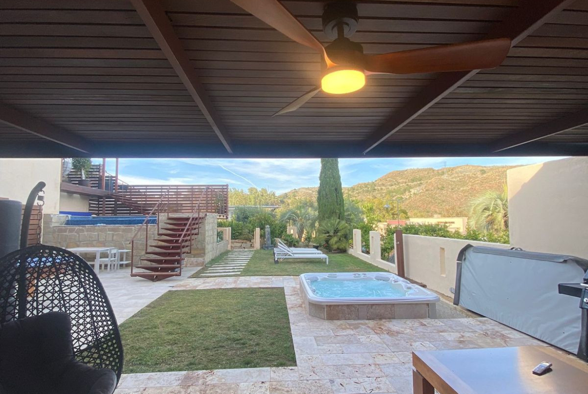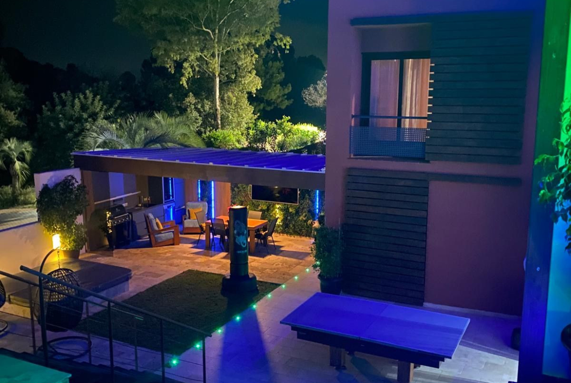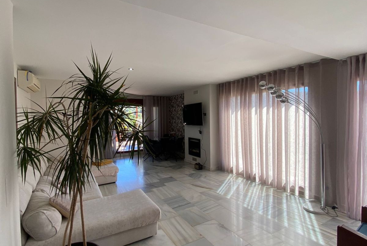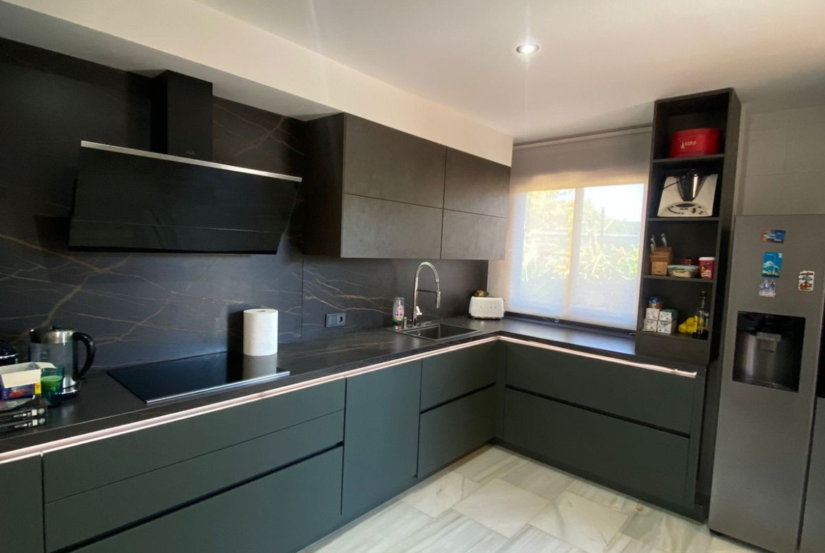 Beautiful villa in the Parque Botanico urbanization, completely renovated. The house has four bedrooms, four bathrooms, a living room, kitchen, garage, storage room, garden, heated pool, jacuzzi, BBQ area, billiards table, and forest views. The urbanization features several swimming pools with a poolside bar, paddle tennis courts, tennis courts, squois, a football/basketball court, a heated pool, a gym, saunas, and a jacuzzi, and is located just 15 km from Estepona and San Pedro de Alcantara.