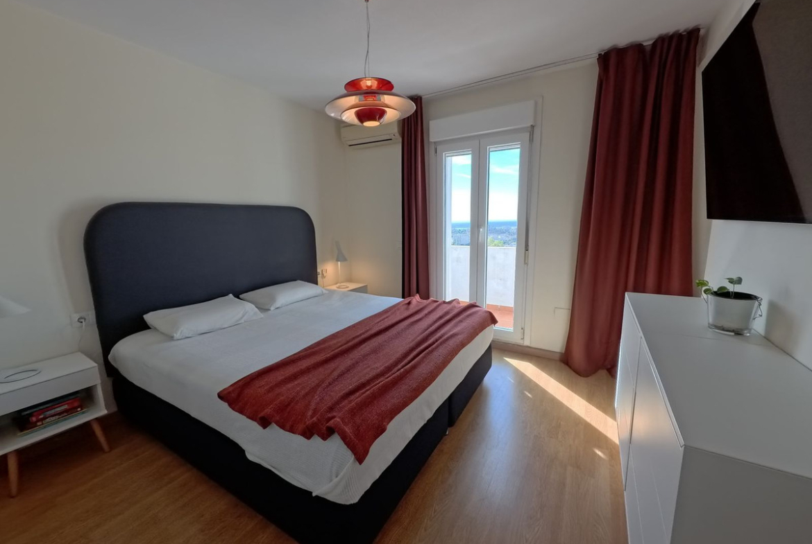 The property is equipped with triple-glazed windows, high-quality external wall insulation, a bioclimatic pergola with LED lighting, ceramic and wooden floors, and built-in wardrobes.
