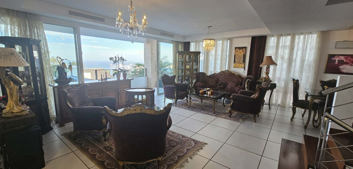 With 458 m² of total built space and over 128 m² of south-facing terraces, this contemporary home offers breathtaking sea views, high-end finishes, and unbeatable comfort. Spread across three levels with a private lift, the property features an open-concept living area with floor-to-ceiling windows, a designer kitchen with BOSCH appliances, and direct access to a stunning terrace. Enjoy sustainable living with 17 solar panels, aerothermal climate control, underfloor heating in bathrooms, and double-glazed windows.