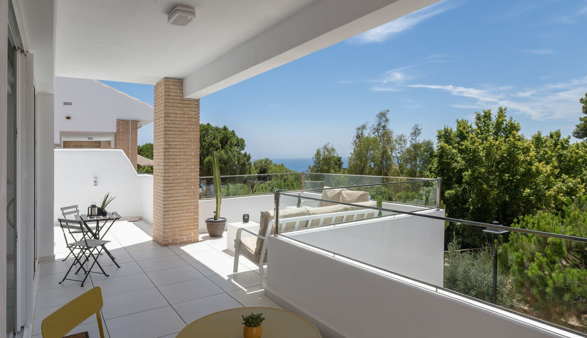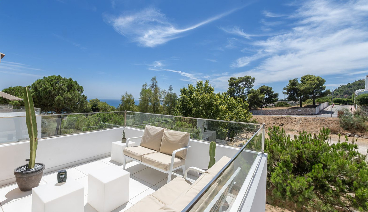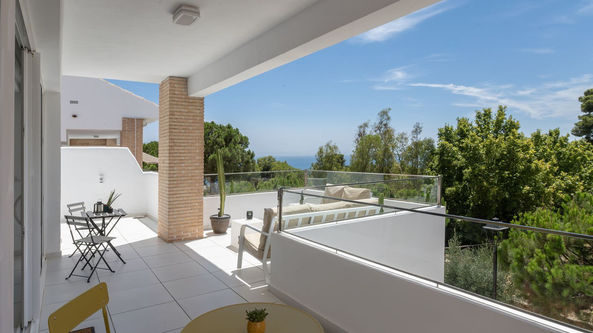 Situated very close to the town of Benalmádena, in an exclusive complex of detached villas, it is spacious, with large windows for a lifestyle that blends indoor and outdoor living, south-facing, and designed with great sophistication. Generous terraces offer inspiring views of the park and sea, from where you can enjoy spectacular sunsets.