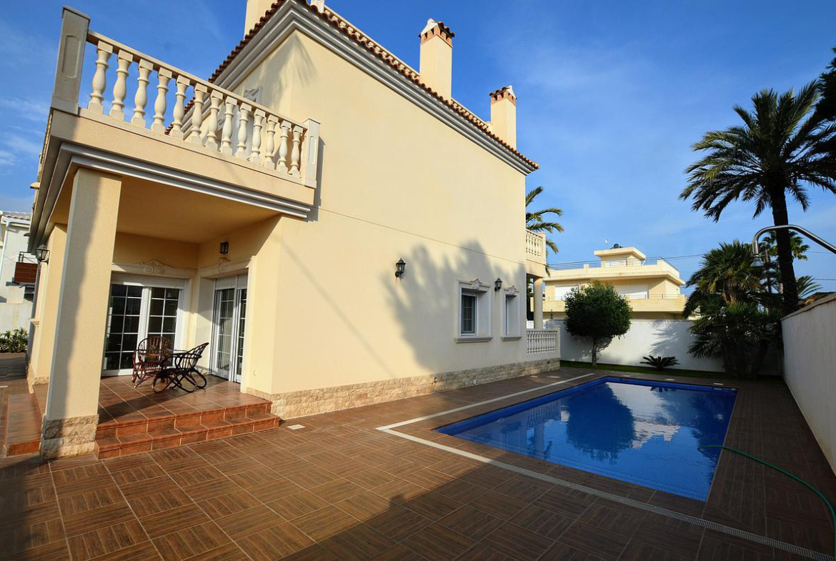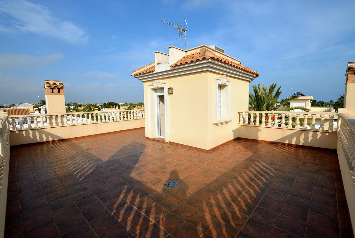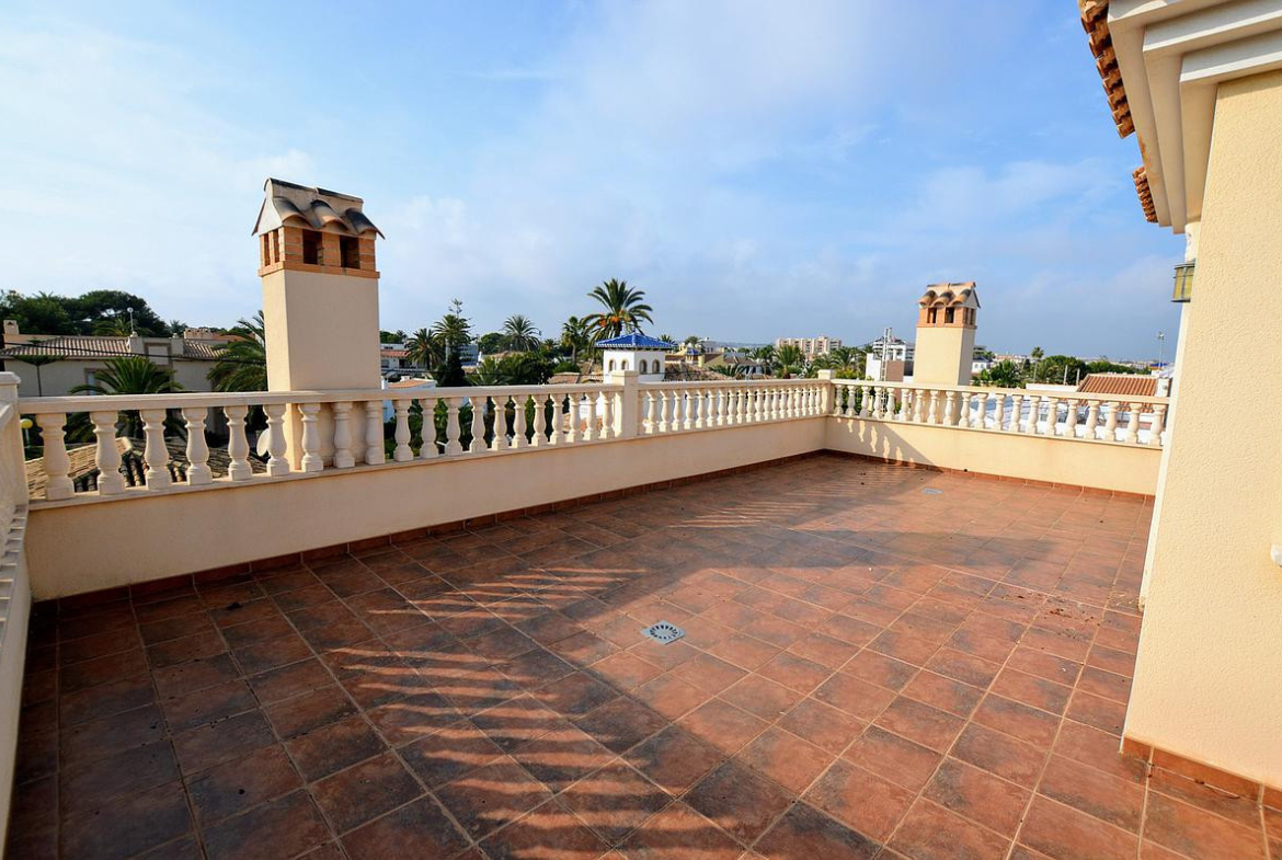We present to you this Amazing Detached Villa located only 400m to the beautiful beaches of Cabo Roig. The villa consists of 4 large bedrooms with wardrobes and each with ensuite bathrooms and a toilet downstairs, living/ dining area with fireplace and a fully fitted kitchen. The property benefits from air conditioning, several terraced areas, private garden, off road parking, solarium, storage and a private swimming pool.