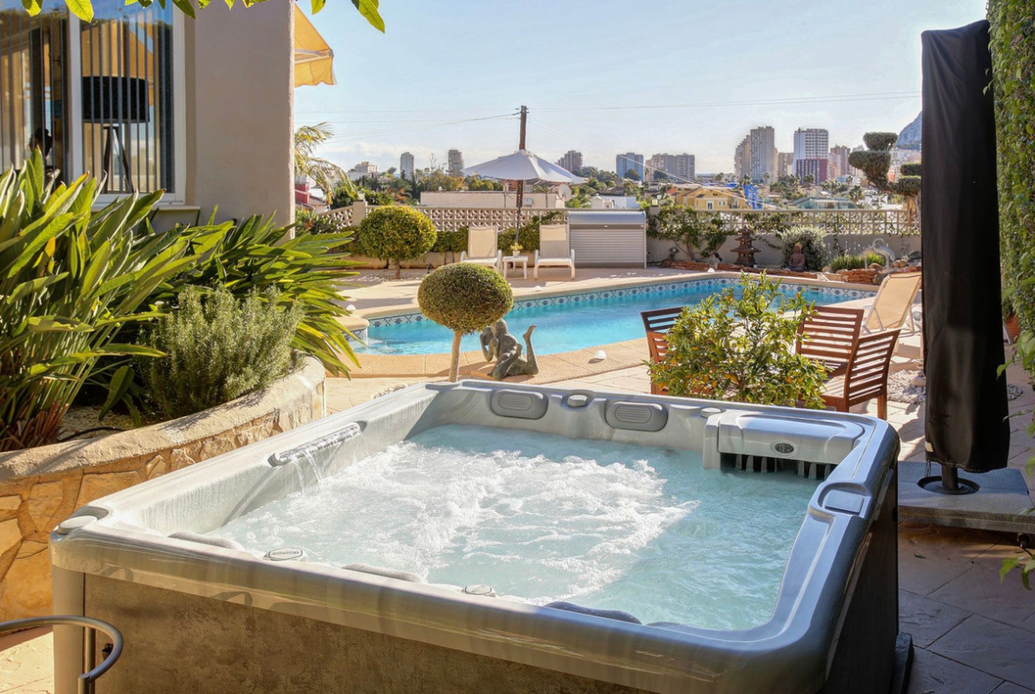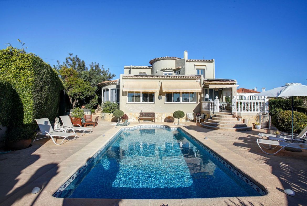 Exclusive villa located in one of the most sought-after areas of Calpe, due to its excellent south orientation, tranquility, and proximity to all services. Just 600 meters from the beach and a short walk to supermarkets, restaurants, and the city center.