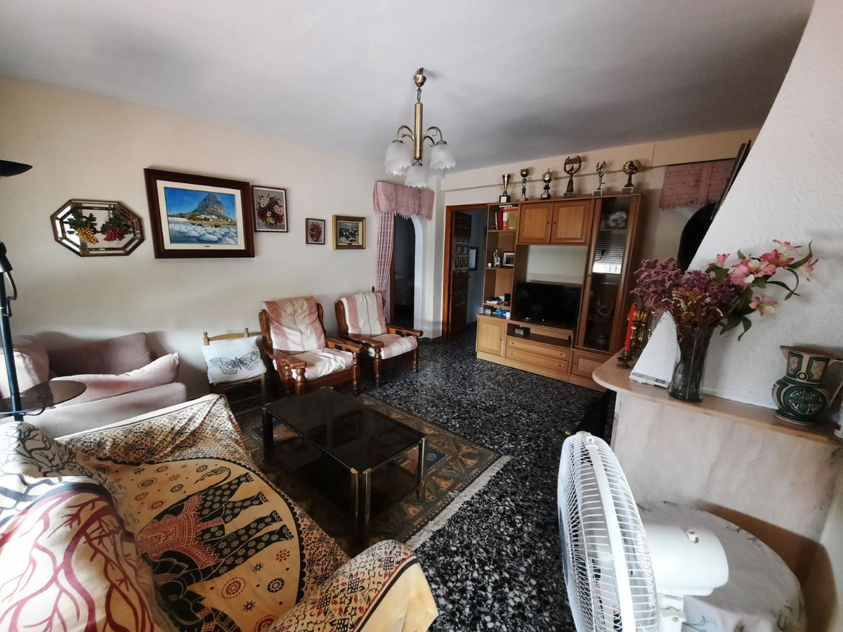 House ready to move into with 219 m², 2 garages of 24 m² each and a storage room. Ground floor: 4 bedrooms, 2 toilets, 2 living rooms of 20 m² each (one with fireplace) with a 25 m² terrace, storage room, a large kitchen of about 25 m2. A covered patio and an open patio with barbecue and wood oven. First floor: large terrace of about 100 m² and a board of about 40 m². Possibility to build a pool on the plot, south facing and a location near the urban center of Calpe. The plot can be segregated to build another house.
