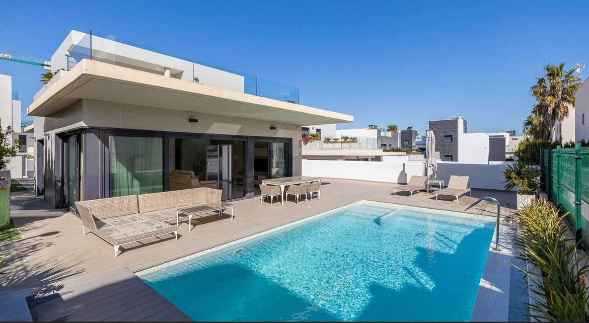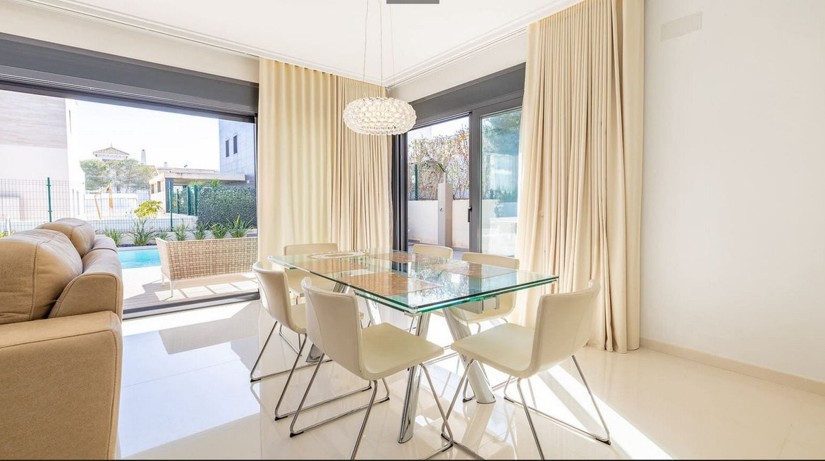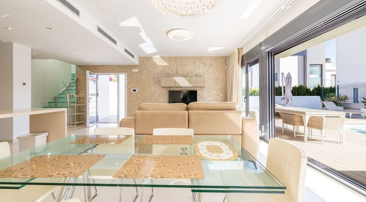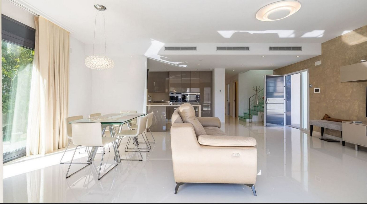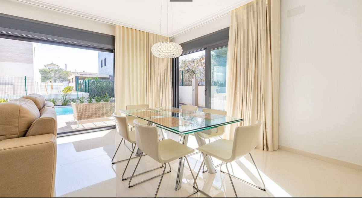 If you are looking for the WOW factor then take a look at this Amazing Detached Villa located in Campoamor. This beautiful villa consists of 4 bedrooms with fitted wardrobes, 3 bathrooms, living/dining area with direct access to the pool and garden and a fully fitted kitchen. The property benefits from a private solarium, terraced areas, parking, electric blinds, underground basement and sold furnished.