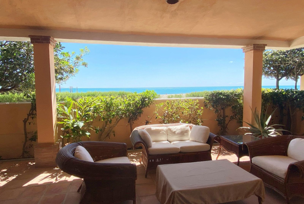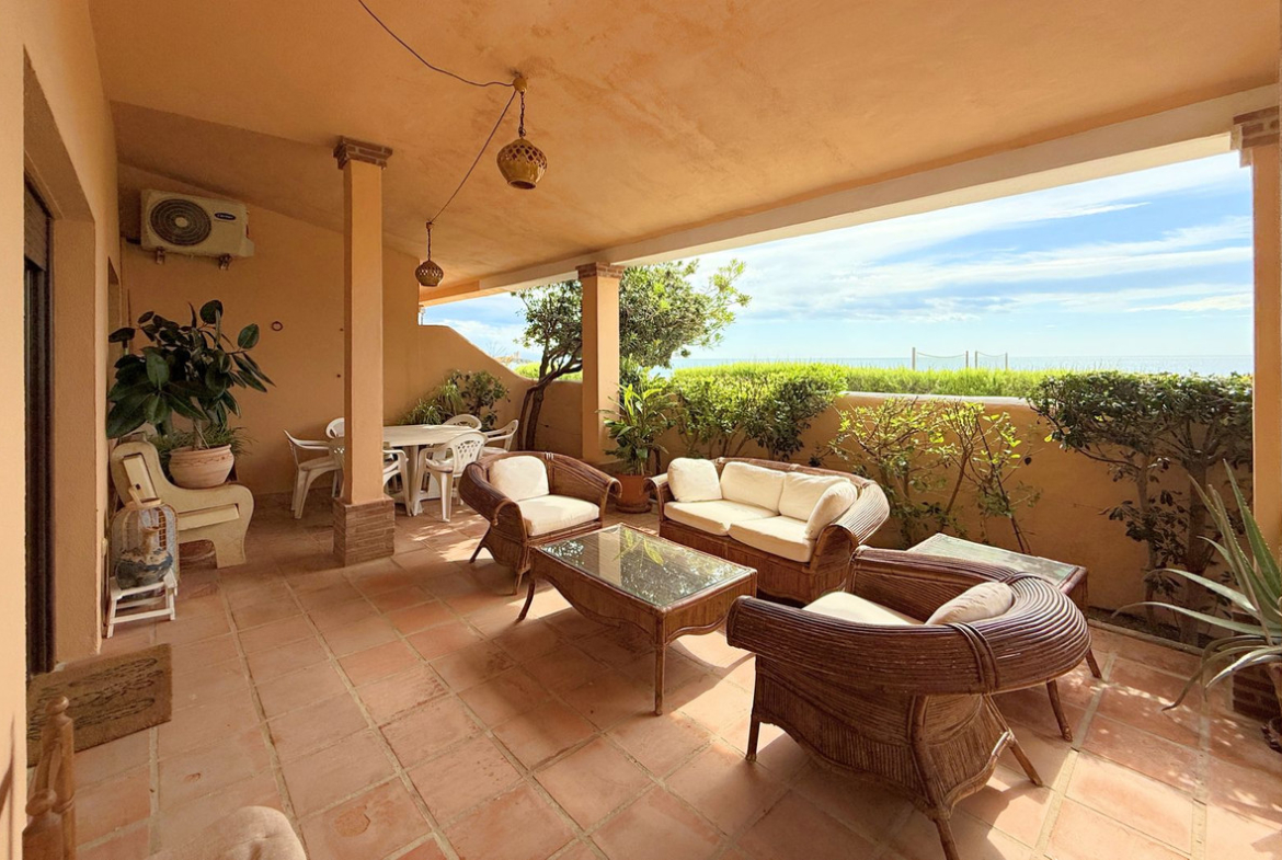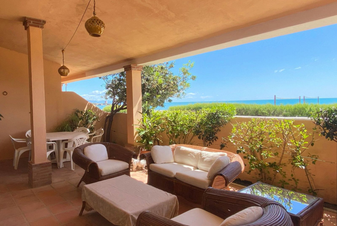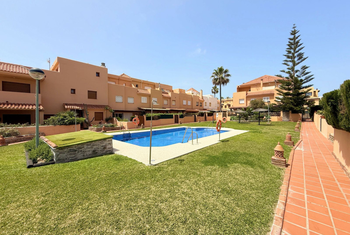 Wonderful beachfront townhouse in Casares Costa! This exclusive property is located within a quiet and private residential complex featuring spacious green areas, a communal pool, and direct access to the stunning sandy beaches of Casares. It also connects to the extensive promenade that runs along the Costa del Sol, offering a wide variety of bars, beach clubs, and leisure areas.