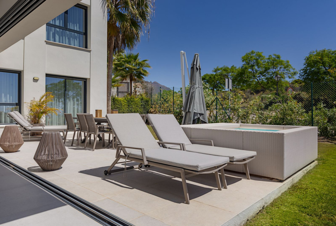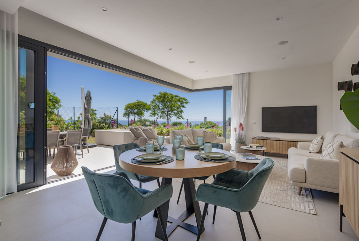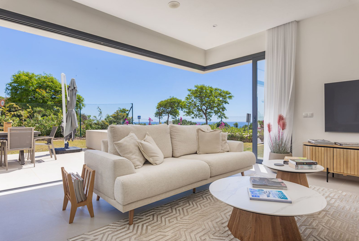 The houses are set on a gentle south-facing hillside with spectacular 180º views of the Mediterranean Sea. The landscape stretches from the Marbella mountain range to Gibraltar and the coast of Morocco.