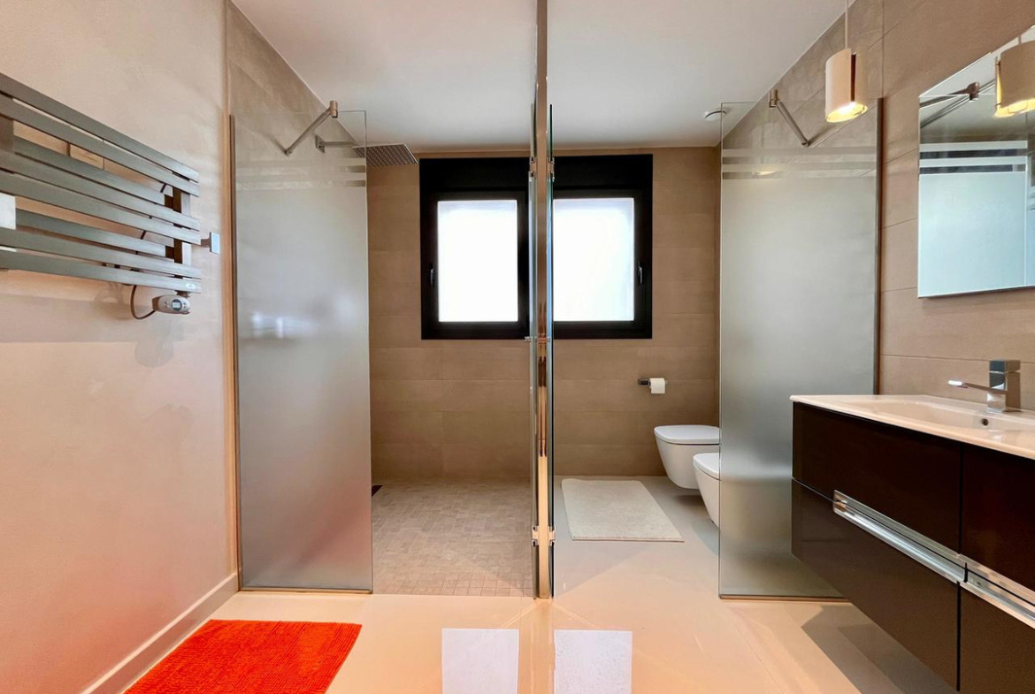 Discover this luxury detached villa in Dehesa de Campoamor, offering 4 spacious bedrooms and 3 stylish bathrooms. Designed with ultimate comfort and modern living in mind, this stunning home features electric blinds, expansive windows, and an open-plan kitchen that comes fully furnished. Every room is equipped with air conditioning to ensure year-round comfort. Additional highlights include a private swimming pool, two large terraces perfect for relaxation or entertaining, en-suite bathrooms, and secure parking for two vehicles.