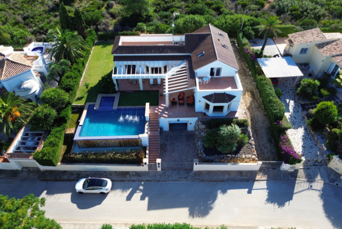 Exclusive Villa with Panoramic Views of the Mediterranean Sea and Montgó – Denia, AlicanteLuxury Independent Chalet | 400m² built | Plot 927m² | 4 bedrooms | 3 bathrooms | Infinity pool | Multiple garage | Tourist licenseDiscover this exceptional villa in the prestigious Marquesa VI development of Denia, where the Mediterranean sun bathes every corner year-round and sea views become part of your daily life.