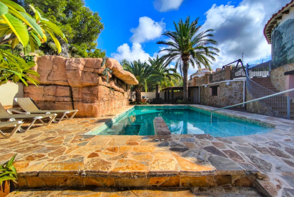 Unique opportunity for investors in the Montgó, Dénia! Just 5 minutes from the center of Dénia and located in a sunny area at the foot of the Montgó, is this magnificent villa that offers enormous potential for both private use and investment.