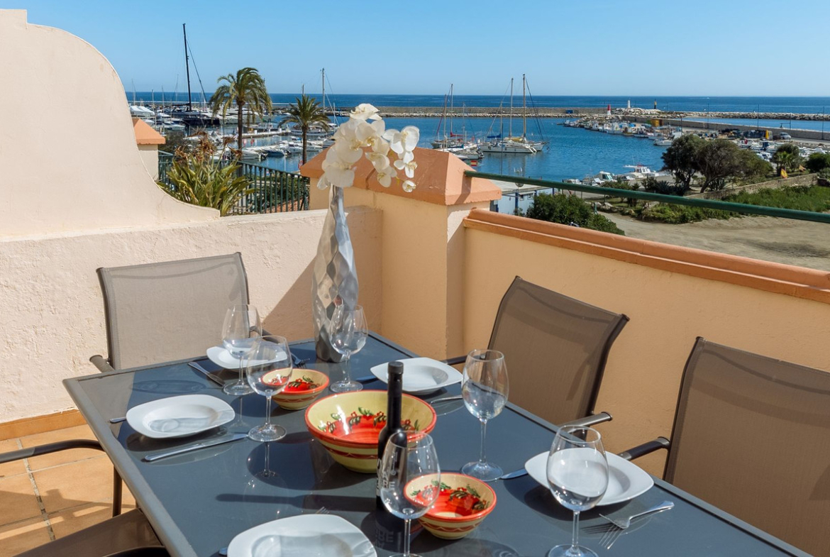 Discover this incredible townhouse, located in a prime spot directly at the Estepona harbour and beach. Enjoy breathtaking views of Gibraltar and the Moroccan coastline, all within the popular Belgravia complex.