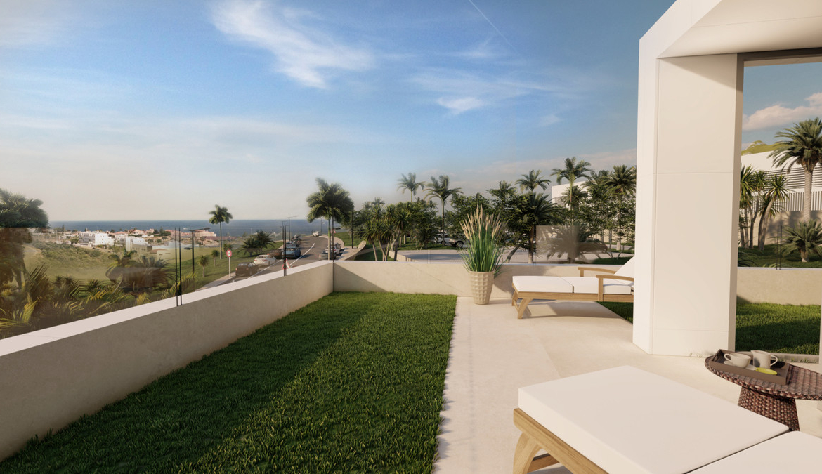 For the realisation of this exclusive new boutique development of 10 attached villas, a plot with wonderful views of the sea, the golf course and the mountains has been chosen.