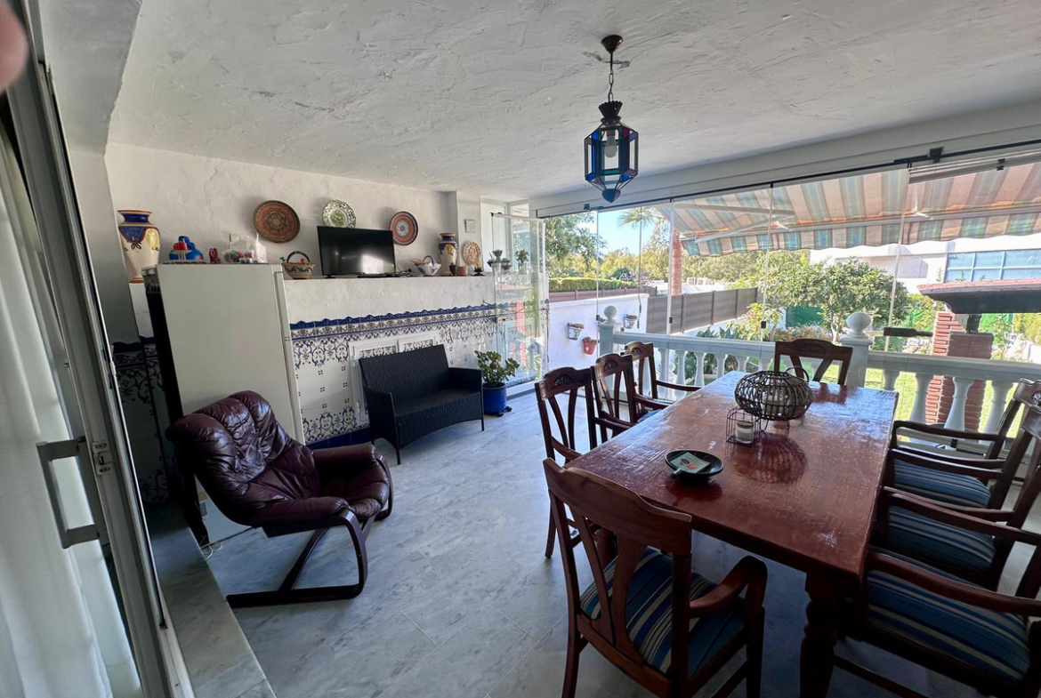 This property is distributed over four floors, which we will now describe. It is ideal for a large family, offering ample space. Located in a small, private community with a communal pool and gardens, it is just 5 minutes from San Pedro de Alcántara and Estepona, and 10 minutes from Marbella. All amenities are within a 1-minute walk: large supermarkets, restaurants, gas stations, and the sea.