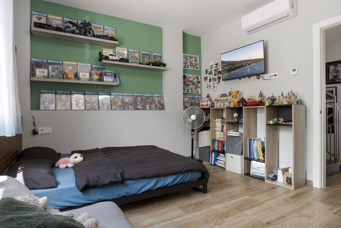 Built on an 84 m² plot, the property boasts a total built area of 232 m² across 2 floors, featuring 3 bright bedrooms, 2 full bathrooms, 1 guest WC, and an impressive private home cinema—ideal for family movie nights or entertaining guests.
