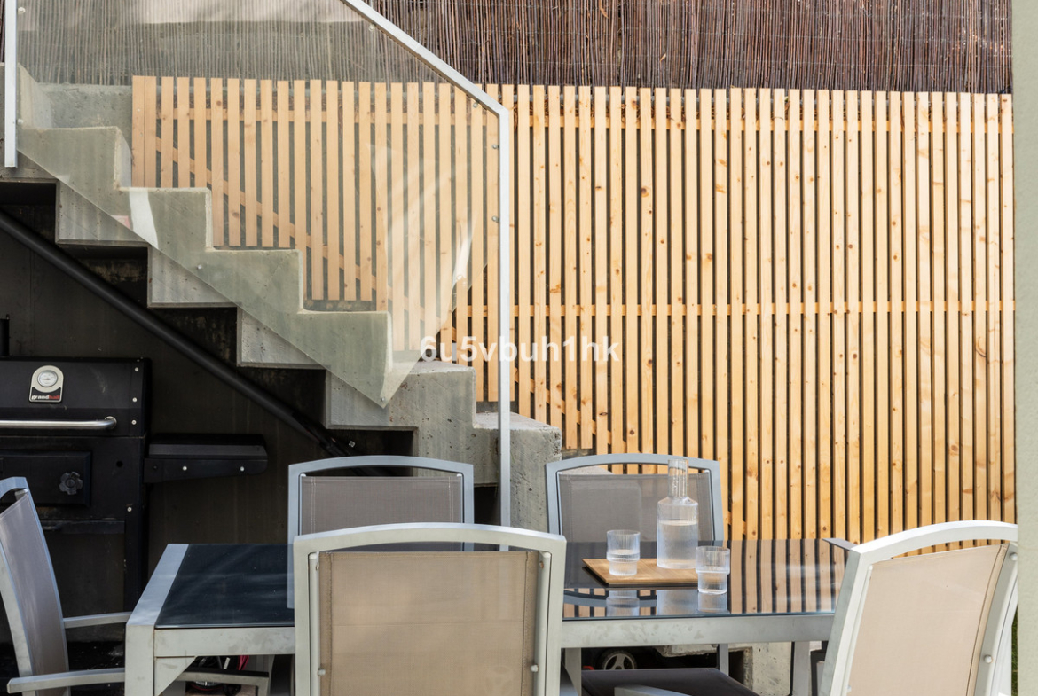 The house has four bedrooms, and its layout is designed to suit families, as the upstairs bedrooms are located close to each other. In this ready-to-move-in home, the interiors combine beautifully with the exteriors and terraces. The yard has its own plunge pool and a Finnish sauna, as well as direct access to the common infinity pool, which has wonderful panoramic views of the sea and the city.