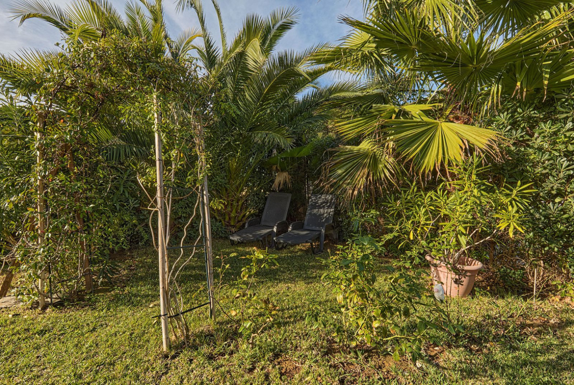 Plot & Orientation: South-facing, with a large pool, terraces, lush gardens, mature trees, and covered carport.