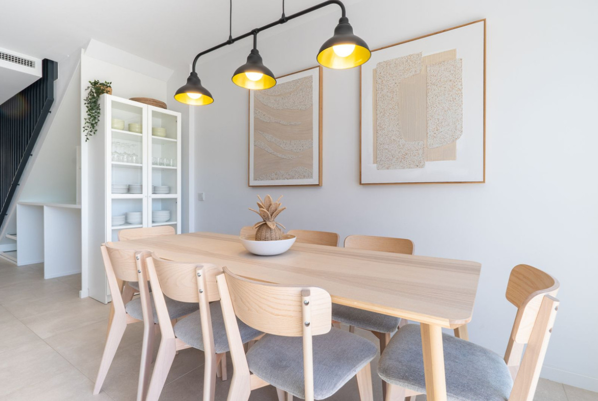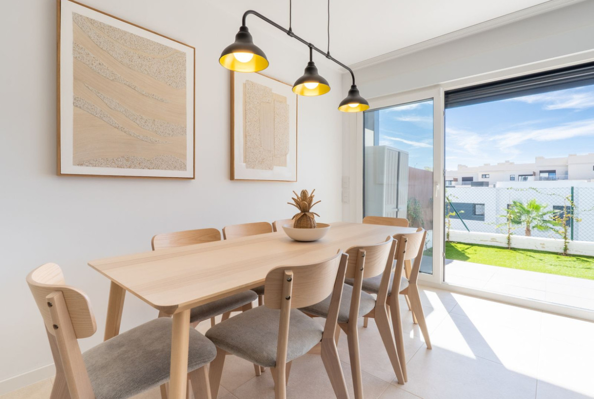 This elegant contemporary townhouse offers bright and spacious interiors, clean architectural lines and seamless indoor-outdoor living. The main floor features an open-plan living and dining area with large floor-to-ceiling sliding doors that lead directly onto the private garden – the ideal space to relax, entertain or enjoy the Mediterranean climate year-round. The home stands out for its modern design, high-quality finishes and warm, welcoming atmosphere, perfect as a permanent residence or holiday home.