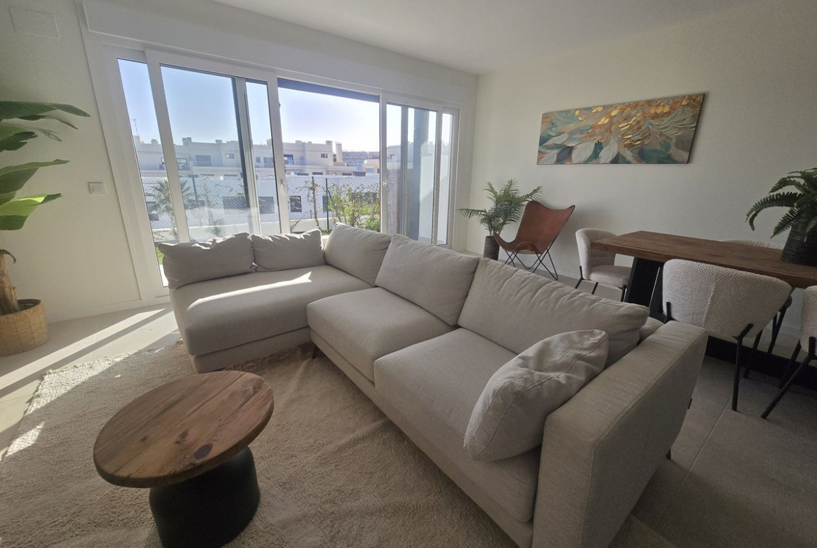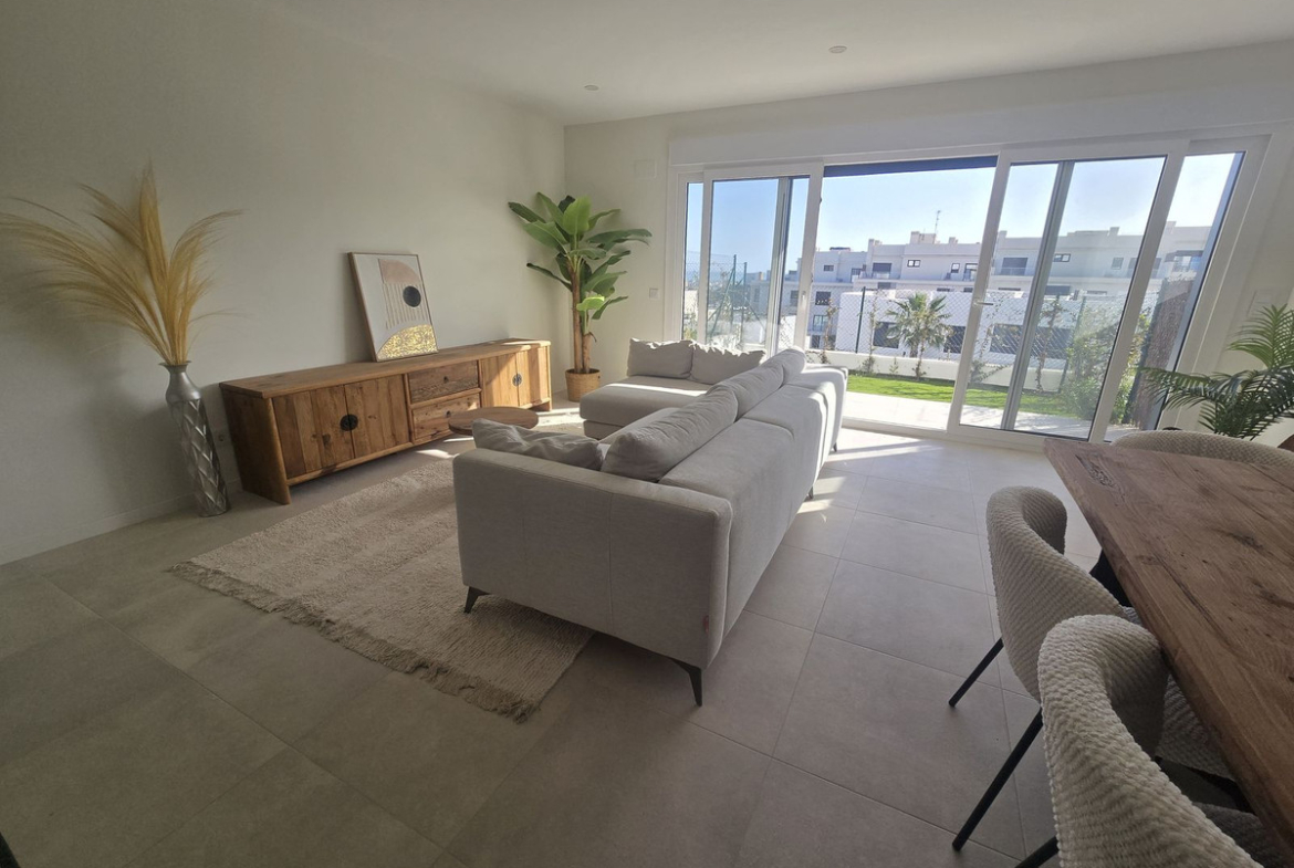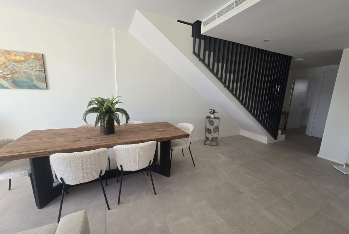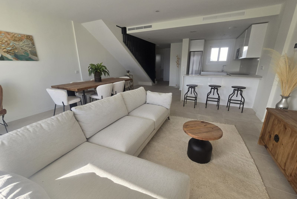 This modern townhouse offers over 160 m² of built space across two levels, with a bright southwest orientation and uninterrupted sea views from both floors.
