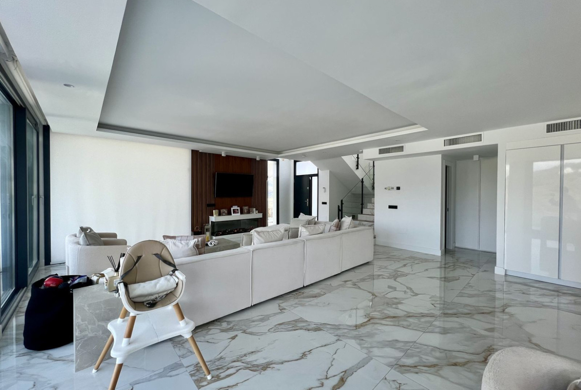 Completed in 2023, the villa is set on a 501 m² plot and offers approximately 357 m² of built living space, distributed over three levels. The property features a practical layout with generous proportions and high-quality finishes throughout.