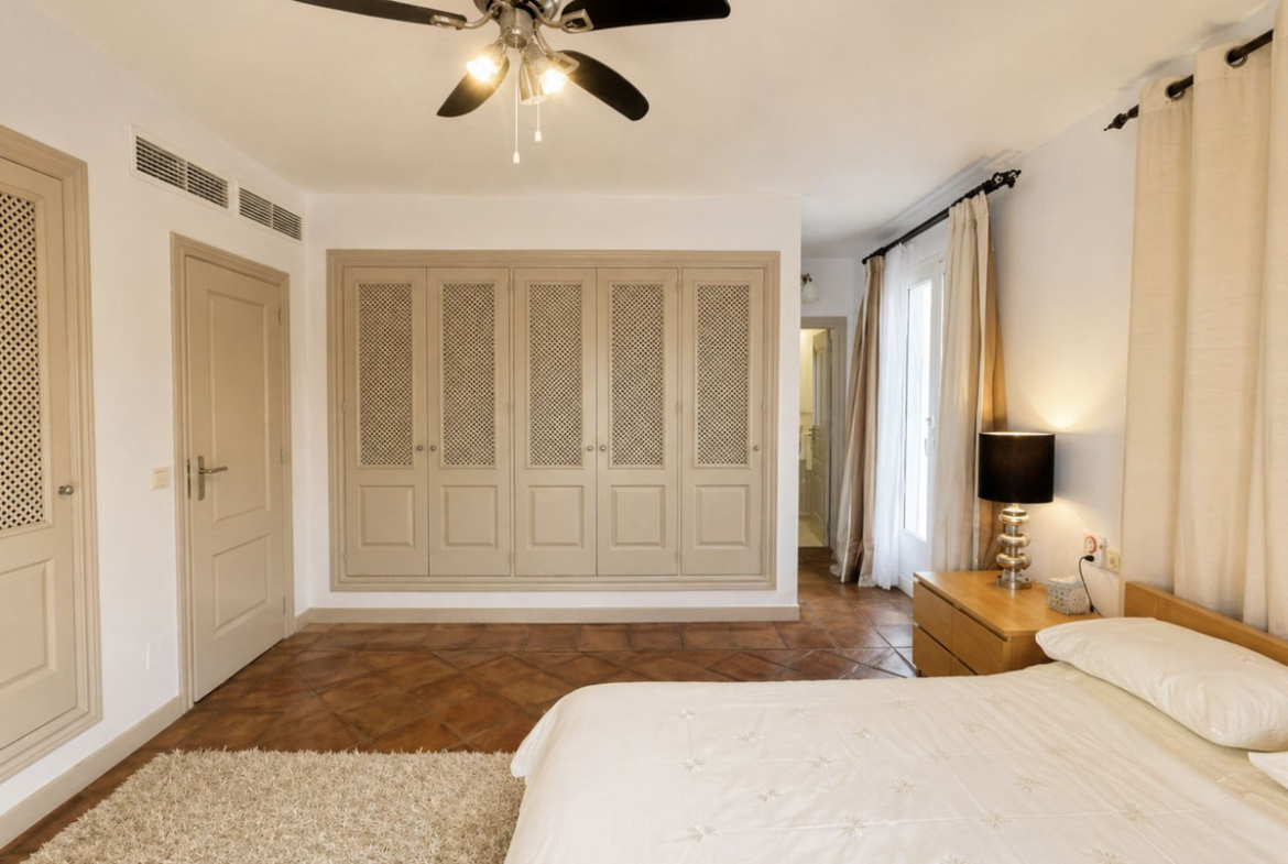 Upstairs you will find three generous double bedrooms, including a superb master suite with its own bathroom and a private terrace overlooking the sea. The two additional bedrooms share a well-appointed family bathroom. The top floor hosts a private fourth bedroom suite with an en-suite bathroom and its own terrace, where the most spectacular sea and beach views can be enjoyed. This versatile space is perfect as a guest suite, home office, or peaceful private retreat.