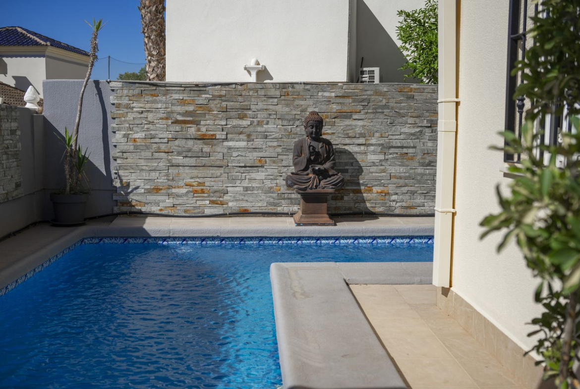 Discover your new home, a striking villa in Las Ramblas Golf that combines elegance, versatility, and modern comfort across three thoughtfully designed levels. On the ground floor, a completely self-contained apartment with its own entrance provides a practical and private space, featuring two spacious bedrooms, a fully fitted kitchen, a comfortable living and dining area, and a modern bathroom. The upper living level is bright and inviting, with a hallway leading into an open-plan lounge and dining area that flows seamlessly onto a terrace and expansive solarium, offering panoramic views. An open kitchen, fireplace and a guest WC complete this floor. On the lower living level of the main house, two elegant ensuite bedrooms each open onto a private balcony, creating tranquil retreats with plenty of natural light and scenic outlooks. Outside, the villa is designed for both relaxation and entertaining, with a private swimming pool, a dedicated BBQ and chill-out area, and a converted garage that now serves as a stylish bar, perfect for evenings with friends. This detached villa is located in the prestigious Las Ramblas Golf community (with views of Hole 2!), with the additional use of 6 communal swimming pools. Nearest supermarkets and high street only a 5 minute drive away.