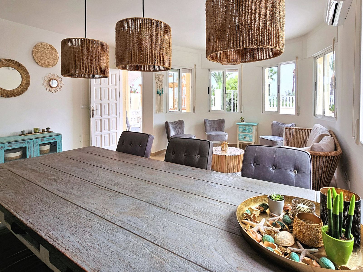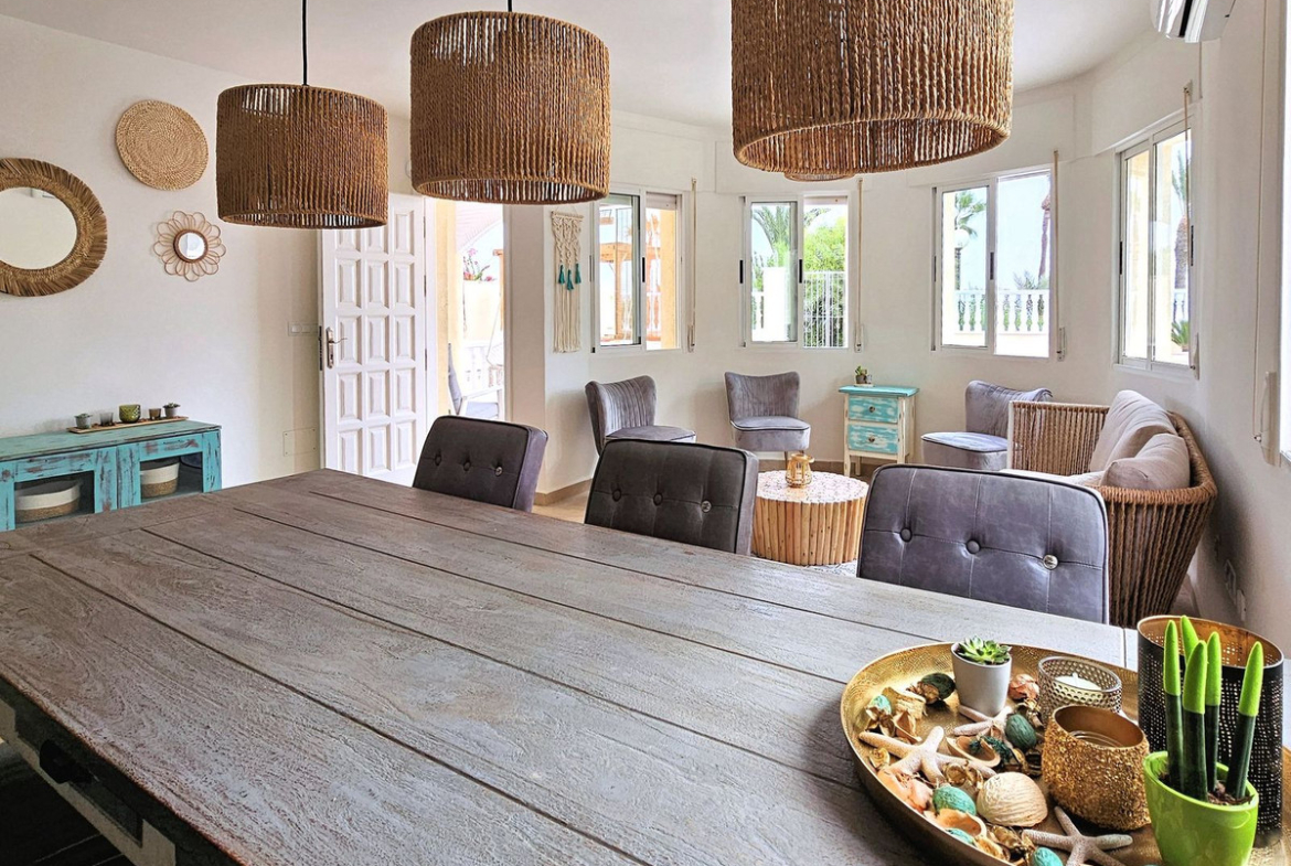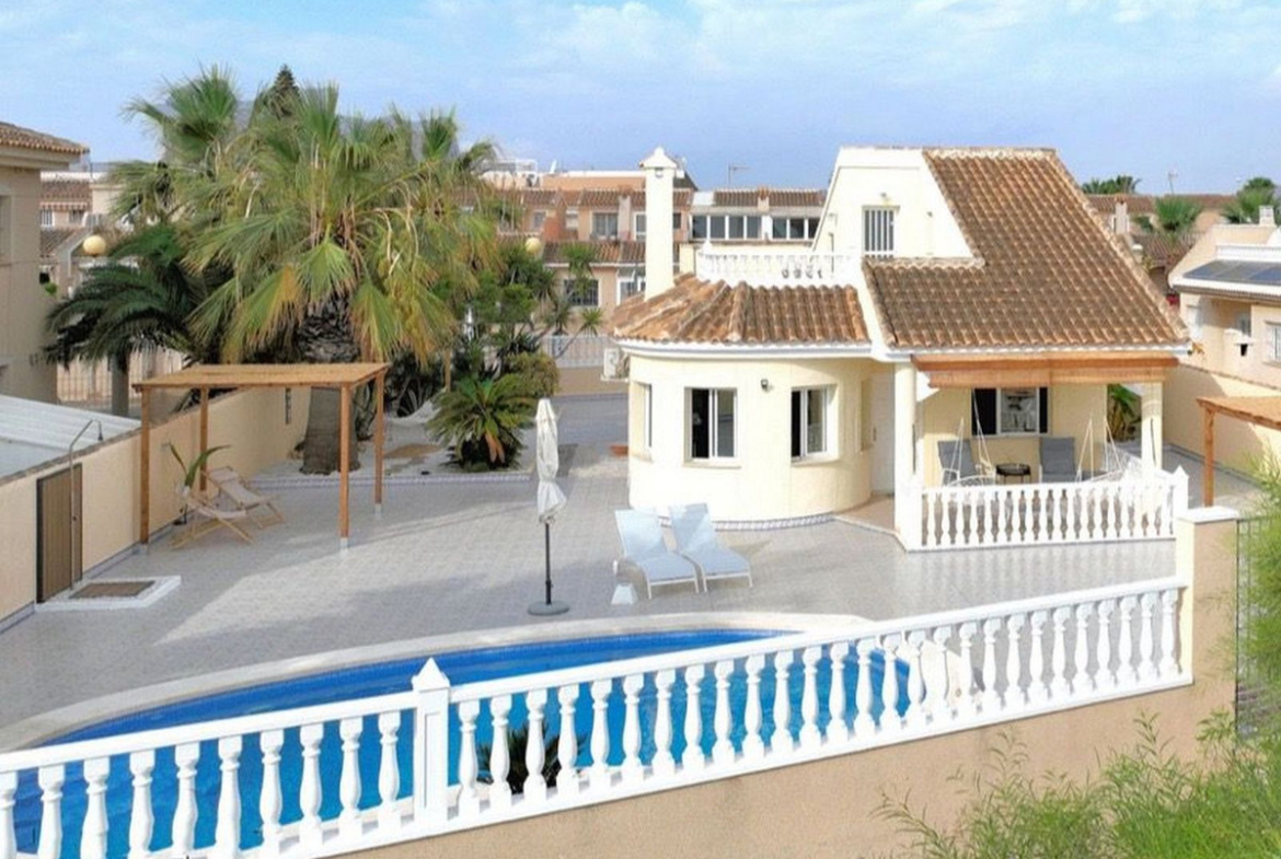 WOW !!!! Take a look at this amazing Frontline Villa directly on the beach in Los Urritias, Los Alcazares and within walking distance to several bars and restaurants. The villa offers four spacious bedrooms with wardrobes, three bathrooms, a living/dining area, and a fully fitted kitchen. It also includes a separate studio with a bathroom and kitchenette. Outside, you'll find large terraced areas, a private swimming pool, storage, and well-maintained gardens.