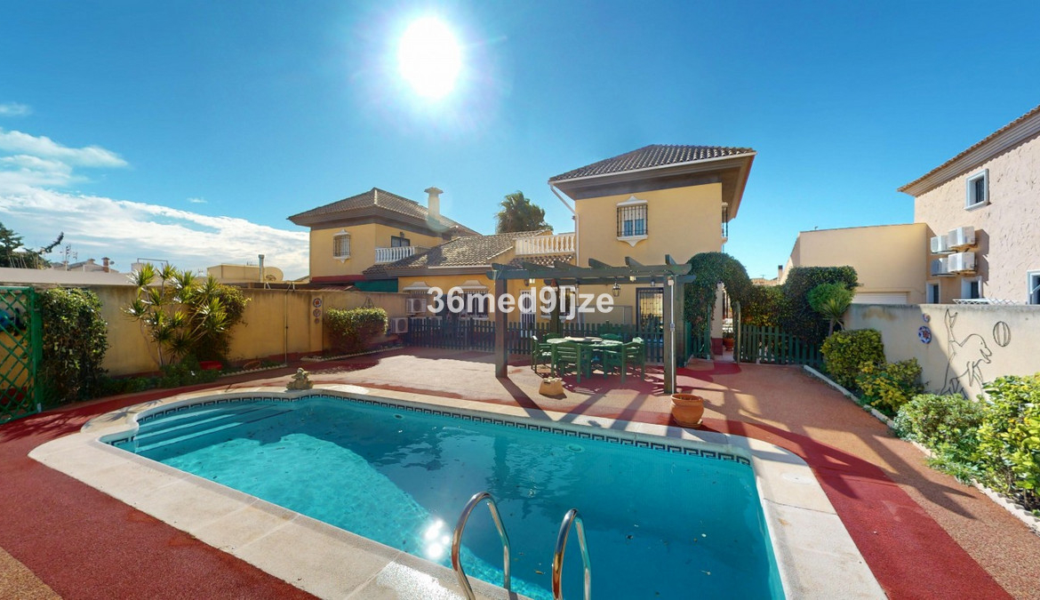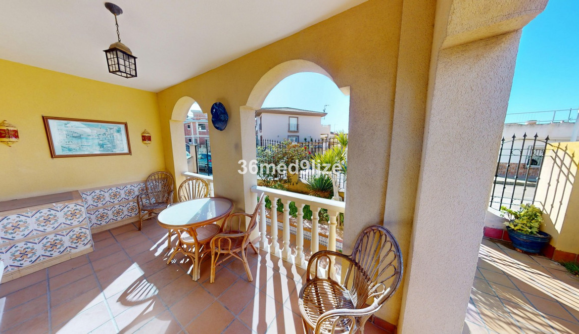 This typical Spanish, spacious property is for sale in Los Alcázares, located in the quiet and pleasant area of Lomas del Rame. The house is set on a large plot of over 400 m² and features a private swimming pool, perfect for enjoying the Spanish climate.