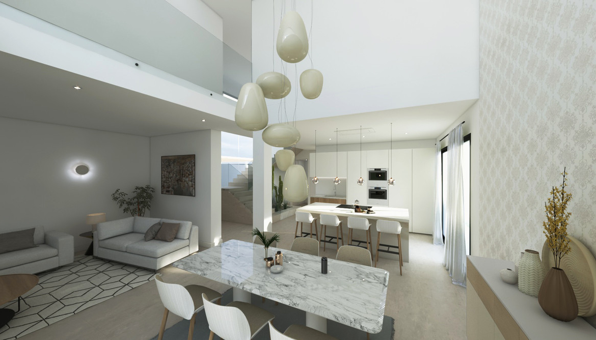 9 magnificent modern detached villas of high quality on plots of approx. 600 m² with 4 bedrooms, all en suite, guest toilet, spacious living-dining-kitchen, private swimming pool, private natural garden and private parking for 2 vehicles.