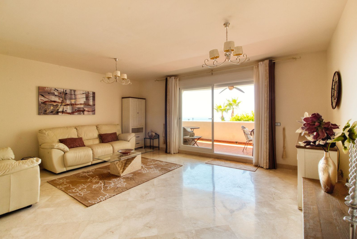 A third bedroom with an en-suite bathroom (also with natural light) opens onto a generously sized terrace boasting breathtaking panoramic sea views towards Gibraltar and the African coastline.