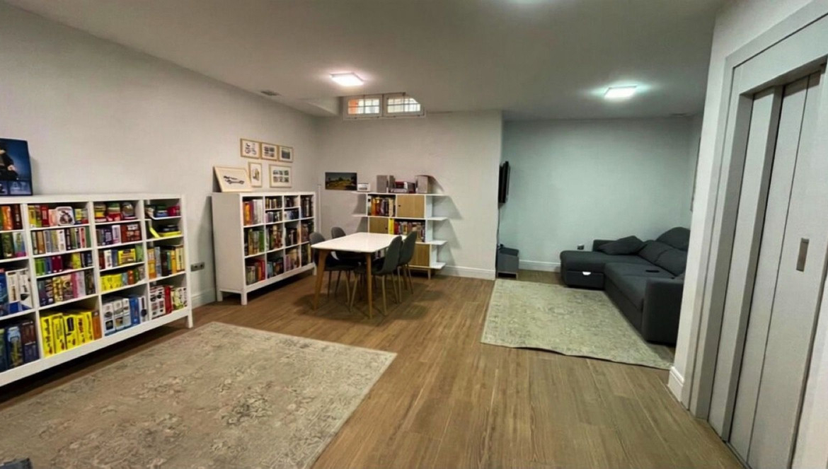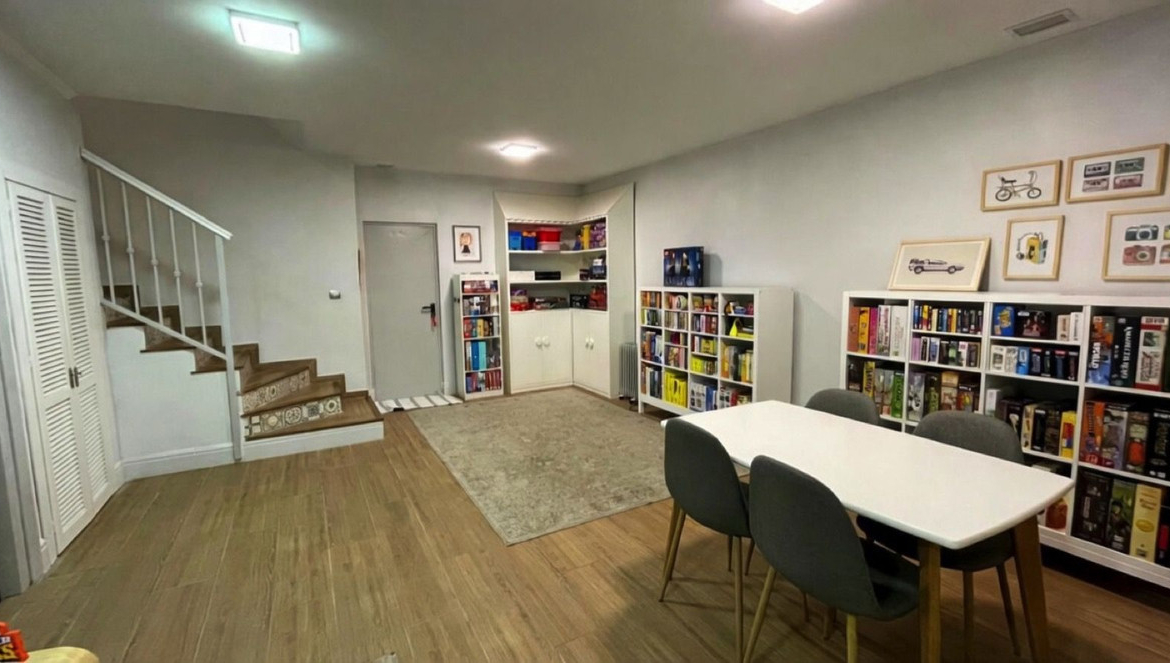 Spacious games room / playroom in the basement with natural light