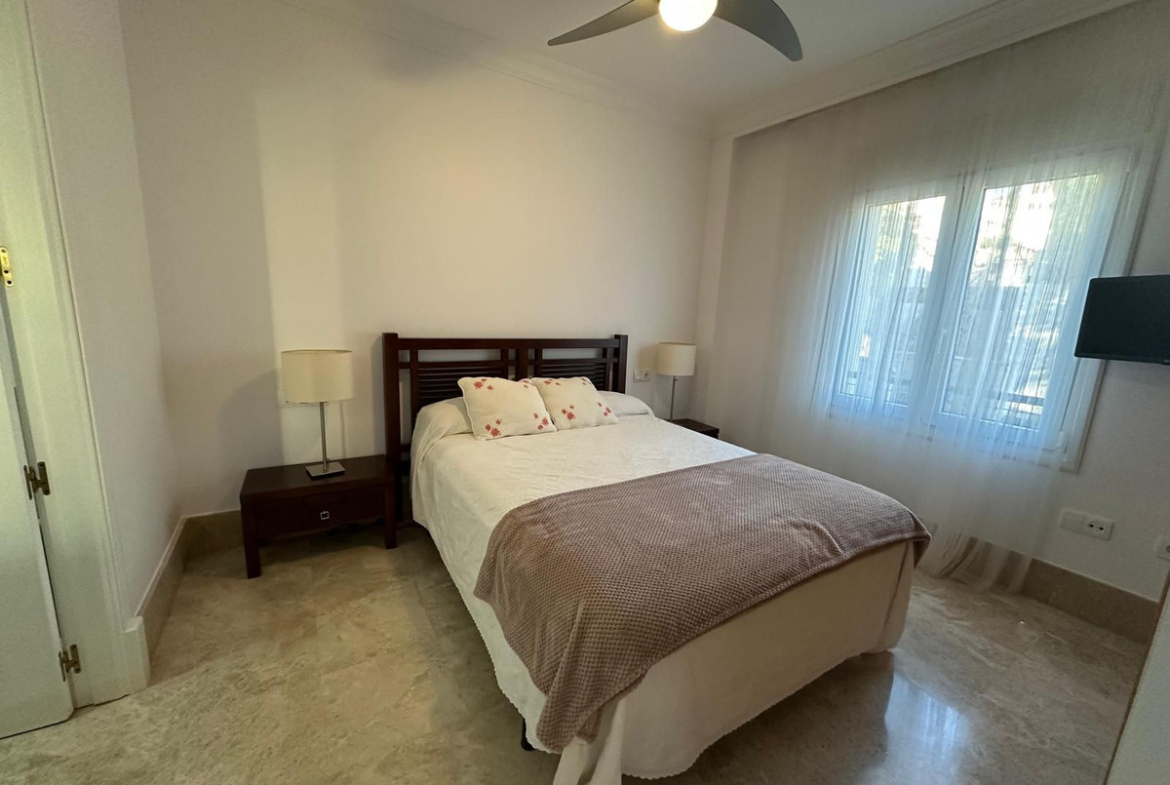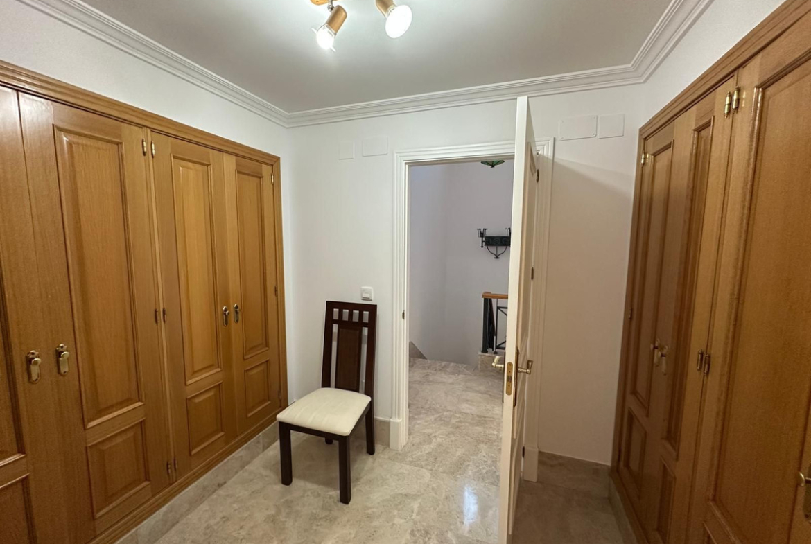 Residents benefit from well-maintained communal gardens and a communal swimming pool within a gated complex with 24-hour security. A solid choice as a golf-side residence or investment in one of Marbella East’s established residential areas.