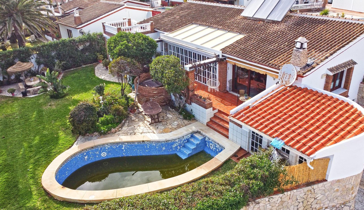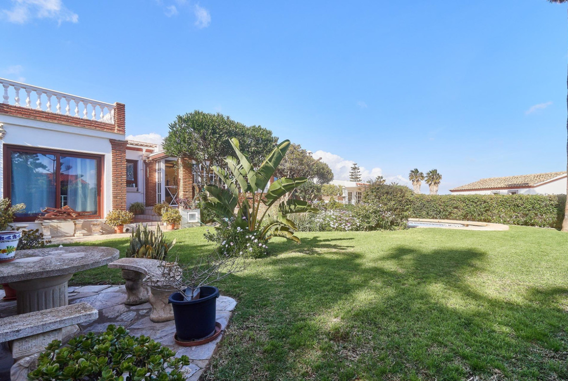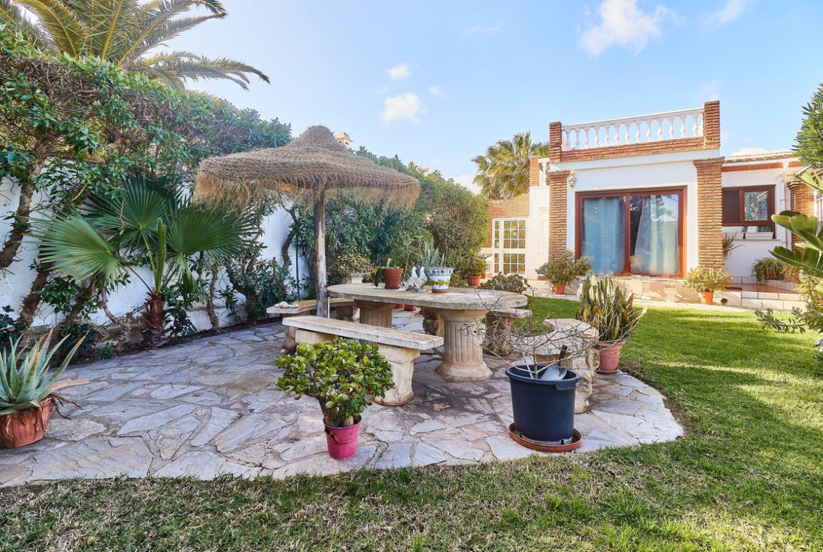 Located in the established urbanization of El Faro, just a few meters from the beach and situated on one of the best plots, offering you stunning panoramic views of the sea and the mountains, is this charming Andalusian-style villa. The property exudes warmth and character, with marble floors, exposed wooden beams and brick arches that enhance its cozy atmosphere.