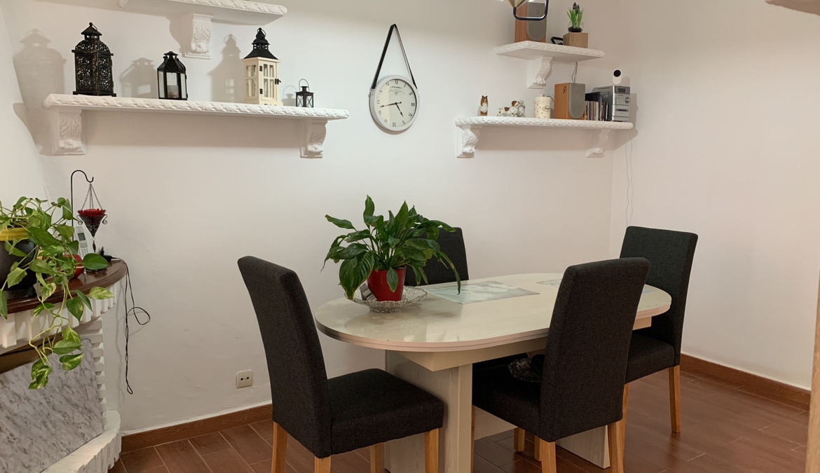 On the main level is the living room, a guest toilet, dining room and kitchen, with access to an inner courtyard and a laundry room. The toilet had a shower previously, so it can be re-installed in the future. Also, in the same living room, there is a small storeroom under the stairs.